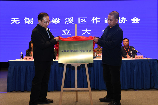 10月26日下午,无锡市梁溪区作家协会筹备、成立大会在古运河畔的梁溪区文化馆隆重举行。会议通过了梁溪区作家协会章程、选举产生理事22名、监事2名。在成立大会上,梁溪区文联负责人赵怀忠宣布梁溪区作协一届一次理事会选举结果,阮锡青当选梁溪区作协主席,杨红(女)、周小康、秦曙钟、章为民、刘晴(女)、徐龙当选副主席;经新当选主席提名,理事会表决通过,刘晴(女)为协会秘书长,连冬花(女)、章岁青、蒋钺为副秘书长。无锡市文联党组成员、副主席吴立群,无锡市作协主席曹建平为梁溪区作协揭牌;吴立群在讲话中,对梁溪区作协的成立表示热烈祝贺并寄予厚望,要求梁溪区作协在新起点上有新作为、有大作为,在出精品、出人才上要夯实根基,文化惠民、服务社会上要有新特色、新亮点。来自全区近百名写作工作者共同见证梁溪区作家协会成立。