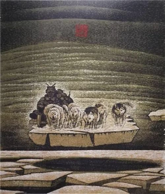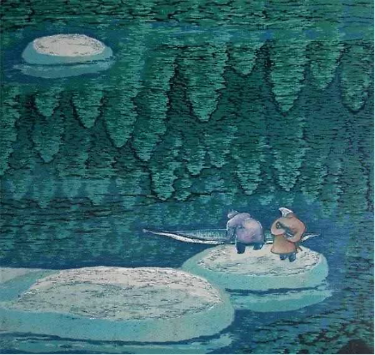 《梦回额尔古纳河》 今天来看,“艺术殉道者”这个措辞固然是激烈了些,但将版画家们称之为“艺术执迷者”,想来是不错的。特别是在这个五色纷呈的时代,在新的社会条件、媒体条件、市场条件下,版画的技术、语言、概念如何互动、发展,面临一系列挑战。究竟怎样的版画才能与时代精神和审美品格接轨呢?才能成为在经济全球化背景下仍具有“中国气派”的现代版画呢?品读徐成春的版画作品,似乎可以从中得到一点感想。