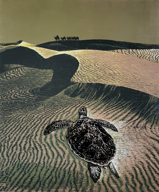 《旷野》 然而全国的版画在这几十年中都经历着一条十分曲折的道路。中国书画与油画的艺术价值已经普遍得到社会的认可,在拍场上不断出现的“天价”拍品也吸引了众多收藏家与投资者的目光,而作为绘画艺术重要门类之一的版画,却只能作为二级拍卖市场油画雕塑板块下的边缘门类。尽管近年来,各种版画活动络绎不绝,然而这并不能掩盖版画市场依然不温不火的局面;而且版画的收藏与投资人群跟油画相比也十分有限。 美术理论家林木在他的《纯粹的版画艺术》一文中曾经说:“版画在今日之中国是一种阳春白雪般纯粹的艺术。喜欢形象乖巧美好的国人弄不懂这种需要高度提炼、概括、抽象,讲求形式意趣的艺术。所以版画进不了市场,大批版画家们也早已知难而退,改弦易辙,而今天尚坚持在版画阵地的人,应该都是那种有着艺术的痴迷,忘世的激情,而又清心寡欲献身这种感情事业的艺术殉道者。”