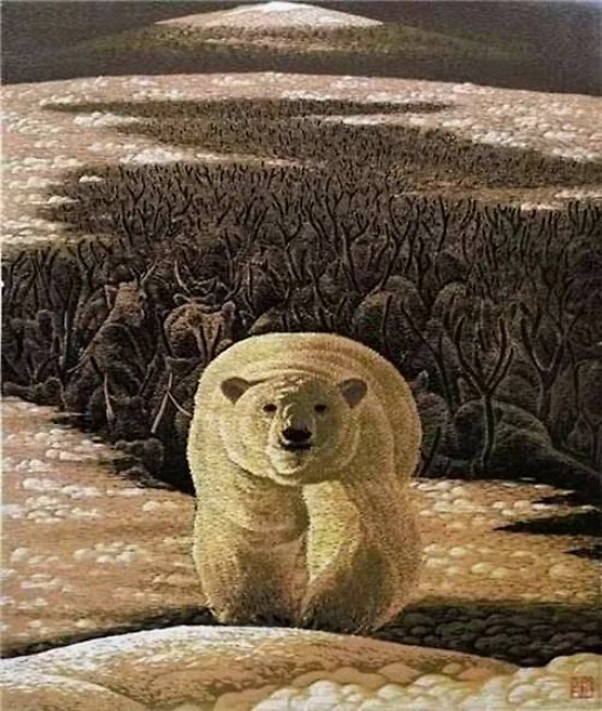 《雪山掠过》 1992年他曾走出大兴安岭,走南闯北漂荡了八年,期间干过广告设计,也苦苦挣扎搞过版画,终因找不到感觉,最终还是回到大兴安岭,重操旧业。他那跌宕起伏的经历,引领我赏析他那多产多变的作品。