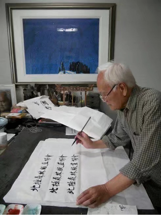 晁楣先生为北极森林版画协会题字 徐成春版画与森林同在 文/晁楣 版画家徐成春同志是黑龙江版画创作群体队伍中的重要骨干之一,也是大兴安岭版画创作群体的创始人之一和领导成员,他的版画作品有浓郁的生活气息,有独具个性的版画语言,更为可贵的是三十余年来,他根植于林区基层,潜心艺术实践,创作了大批版画佳作,成绩卓著,并在组织本地区群体创作、培训版画爱好者和重大展览活动,以版画作品宣传大兴安岭形象中发挥了重要作用和影响力。我对他今天所取得的成绩感到高兴、表示祝贺并致敬意! 徐成春同志从上世纪七十年代开始学习版画,其间还曾涉猎国画、连环画和漫画创作,1985年至1986年入鲁迅美院版画系学习后开始专注版画创作,且作品逐渐走向成熟并形成个人风格。他的创作题材以森林风光和人物并重,融装饰美与写实美于一体,营造出真实与幻境兼具的艺术氛围,令人耳目一新。如他的版画作品《遗失的层林》《记忆的河流》《归来的家园》等系列作品参加了国内美术大展;《迁徙》《漂逝的岁月》《远山故事》等系列作品入选国际版画作品展获奖并获好评,都可以在一定程度上说明,徐成春的版画艺术在表现真实感、存在感的同时,因为虚拟之境的巧妙介入及梦幻色彩的个性化运用,触动了现代观者的心灵,从而引发了新的思考。 徐成春现任大兴安岭地区文联副主席,大兴安岭地区美协主席,北极森林版画协会会长职务,是大兴安岭版画的领军人物。目前黑龙江大兴安岭地区是我省版画专业队伍成员深入生活重要基地之一,对黑龙江省版画创作事业的发展起到重要作用。由此可以预见,在本地区生活工作和创作的徐成春同志,凭借他对大兴安岭地区在精神文化与现实生活深度融合道路上的探索,凭借他对版画艺术的孜孜以求以及勤奋好学,一定会走的更远!创作成就更高! 晁楣2013.6.2 于哈尔滨 (晁楣 1931年生于山东菏泽。著名版画家。北大荒版画开创者、组织者代表人物。中国美术家协会理事、中国版画家协会副主席,黑龙江省美术家协会名誉主席、黑龙江省美术馆名誉馆长,黑龙江省版画院名誉院长、黑龙江省版画会会长,黑龙江省文史馆馆员。多次担当全国美展总评委会委员和全国版画展评委会主任。建有“晁楣版画艺术陈列馆”“晁楣艺术馆”。)