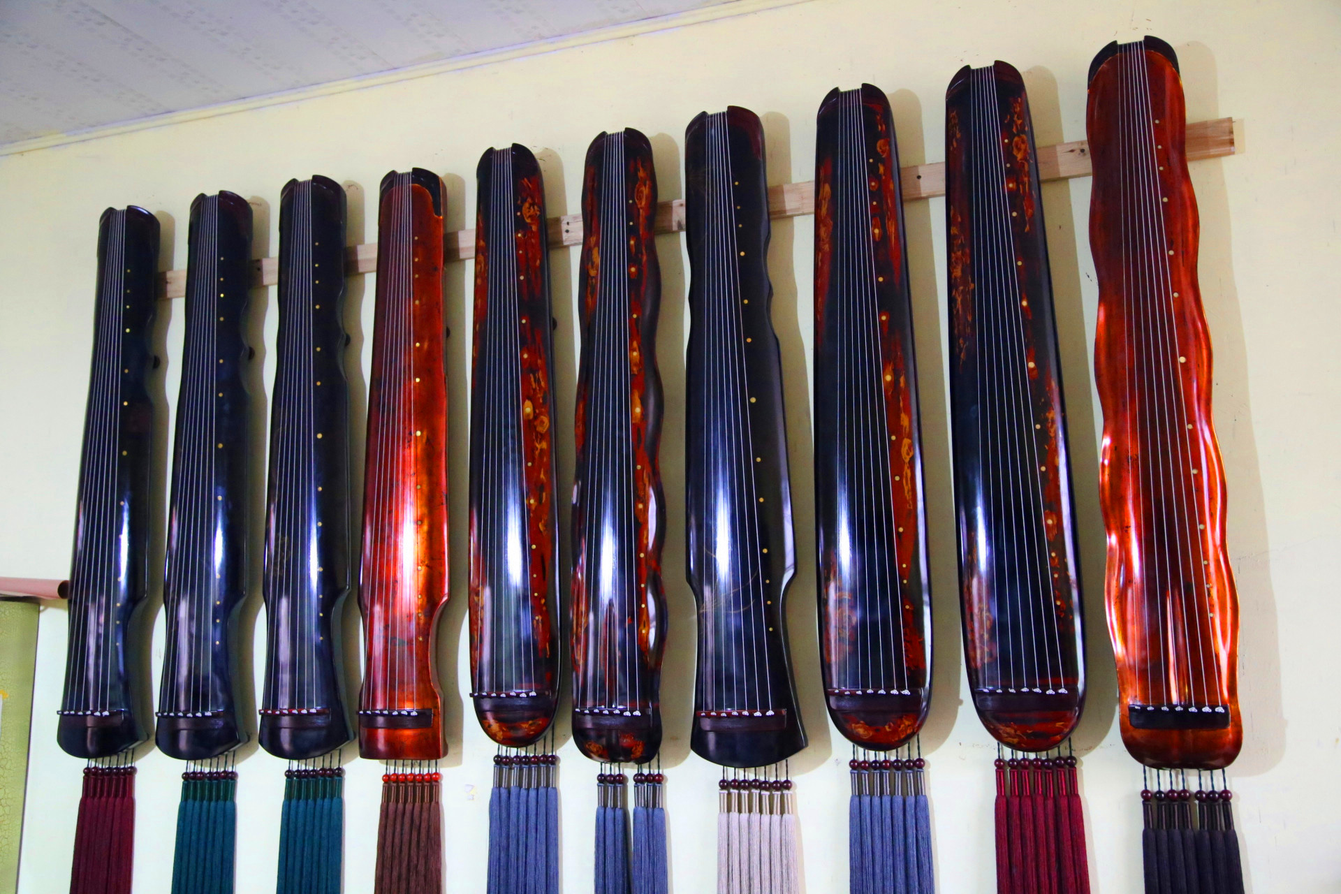 钟奇君不仅坚守着一颗“匠心”,还致力于非遗技艺的传承和播种。只要有机会,他就到处跟人宣传金缮技艺。他会定期到附近的学校为上千名学生义务讲课,学校也经常组织师生到他那里学习,学生们还会把自己的金缮作品拿出来展示评比。在他的影响下,学习金缮技艺成了周边学校的特色课程。钟奇君的金缮技艺,也吸引了海外学子的跨国漆器对话,使钟奇君的漆艺作品得以传播到更远的地方,海外学子们为独特的非遗漆艺所惊艳。近几年,也有有很多从安徽、江西等地赶来的人向钟奇君学习技艺。截止目前,从钟奇君工作室走出去的学徒已有300多人。钟奇君还多次应邀到浙江省博物馆,浙江大学传媒系研究生、外国留学生开班授课。钟奇君说,这样一门经过上千年历史沉淀的宝贵技艺,倘若失传,实在是件憾事。学员们的热情让他感觉到,“修文物”成为一种时尚,让他深感欣慰。 钟奇君在成为了一名优秀的金缮师的同时,他也是一名古琴斫制师,后者同样离不开漆。 当年,钟奇君开始正式学习漆艺,同时也走上了古琴斫制这条道路。所谓古法斫琴,是指采用唐代传统方式精工细作的一种古琴制作工艺,它是融汇文化、艺术、音律、美学修养和木工、漆工等技术于一体的综合技艺。古法斫琴完全沿用唐代时期古琴的纯手工制作技艺,每张琴经过选料、定式、造型、槽腹、辨音、微调、定音等几十道传统工序,历时两年多方能完成。至今为止,钟奇君已经做了上百张古琴。“做琴做了10几年,慢慢有了自己独到的见解,这不是一些工厂里的机器可以替代的。”钟奇君说。 钟奇君介绍,做一名合格的斫琴师必须经过四大关,分别是传统文化关、古琴艺术关、工艺美术关以及身体关。斫琴师要有一个好的身体,才能承受住制琴过程中的种种考验。除了体力要好外,斫琴师还不能对生漆过敏。如今愿意吃苦、耐得住寂寞的年轻人越来越少。钟奇君想要一脉相承,把好的东西流传下去。