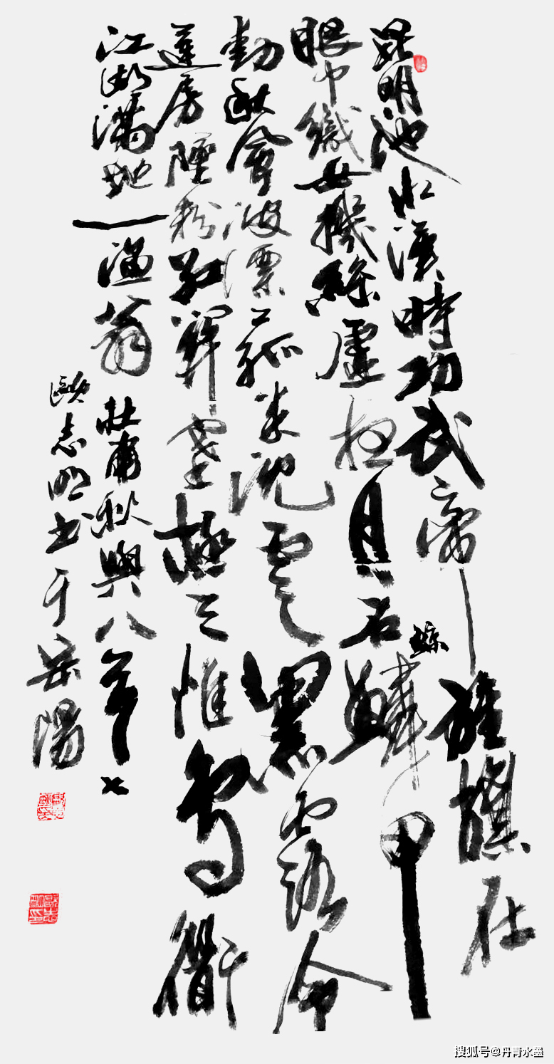 飘风骤雨惊竦竦 落花飞雪何茫茫 ——记著名书法家欧志明 书法是笔墨艺术,笔墨塑造意象,正是书法飞仪丰神的真谛。著名书法家欧志明先生,深谙此道,执笔铺陈墨韵,把书法的诸多意象表现得无以复加!观赏他的书法有钢打铁铸之意象,有虬龙蜿蜒之意象,有龙跳天门虎卧凤阙之意象!意象之丰富,令人应接不暇,畅神其间,令人赏心悦目! 欧先生的书法诸书博涉,尤其以形神兼备、挥洒自如的行草书法而闻名!无论是在观赏层面还是在艺术品收藏层面,都有不俗的口碑,在书展、文化交流过程中也尽有影响力。他磨砺行草书法,有取法为上的价值观!其法师法帖,帖之来源有张旭的古诗四帖,所以写得妙于肥,笔墨可作丰腴劲筋!也有怀素的自叙帖,习得铁点银钩,起笔落笔,高低有趣。笔墨形态,也有王泽草书涨墨飞白之功,初起笔大墨淋漓,直写到飞白苍茫,大漠孤烟!有法写正宗,无法是江湖。欧先生的书法因为法取贤者圣者,所以笔墨因循书法文化的龙脉,可以作出古今永传的文化品位! 无限的线条变化,是其书法充满无限表现力的重要玄机。赵子昂有论,结体因时而易,唯有用笔千古不易!不易核心,既是笔墨线条写万类之相的真谛。欧志明先生写行草,执笔作线条,近取诸身,远取诸物,把书法线条抽象写出形象化,粗线条如鸿飞兽骇,大笔一挥如惊雷驰电,一气呵成,满座失声看不及。轻笔使劲,又见牵丝映带,线条如激楚浪以成文,复如惊蛇之透水! 笔墨线条长短相较,高低相盈,最有道法自然的天质要妙!心执笔,情作墨,以书抒情,线条起伏跌宕的节奏,也是心迹映笔迹的现象,可以心手双畅,在一点之内殊衄挫于毫芒,也可以在一划之间变起伏于锋梢!由此可证,他的行草功夫,也有师书谱的琢磨,书谱里所有的书法意象,都会成为他笔墨可以复建的形象,师而不拘,遂心应手,高手作书,尽皆如是! 飘风骤雨惊竦竦,落花飞雪何茫茫。书论有言,草书古势多矣,要得草书机密,需有“自得之”的修养。张旭草书写孤蓬自振是自得之的结果。怀素草书师壁坼之路也是自得之的结果。颜真卿有草书师屋漏痕的所得。欧志明先生创作草书,除有有法取法帖的来源之外,也有自得之的成果。其笔写变化,师夏云变幻,因风而作,把动态和势态写得惟妙惟肖!动是风卷云,势是云作雨,势来不可止,势云不可遏。满纸云烟浩荡,必是笔墨奇观!观其书法则有感叹:草书渊妙,代不绝人。大手笔,写非凡! 子曰美术馆艺术顾问 :孔令仁 2020年12月9日