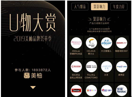 本次美柚举行的“2019美柚U物大赏”,汇聚了全网女性消费力量,在2亿+女性用户的见证下,采用“线下用户征集+网络用户票选+平台达人推荐+资深编辑点评”的形式,通过层层严苛的筛选机制,最后甄选出获奖产品及品牌,打造强势U物大赏榜单,为消费者和行业提供更具公信力和权威性的参考。