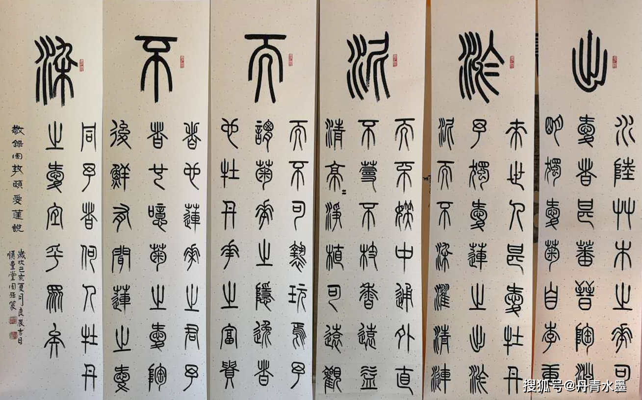 深研篆籀 功循龙脉 ——记著名书法家周强 王羲之作笔势论有一言,穷研篆籀,功省易成!由此可见,书圣对于学书之道,首推对篆书的深刻研习。当代著名书法家周强就是篆书大手笔,他用穷研篆籀的磨砺,为书法文化寻本逐源,也为书法修炼者如何介入书艺法门,找到翰墨真谛,做出了精彩的示范! 周强先生写篆书,首先是有取法为上的价值观。篆书以秦篆为成熟,亦以秦篆为峰巅。周强之篆,取法泰山碑的正大,亦参悟峄山碑的典雅,当然也不缺少琅琊台刻石的圆活生动。唯有像他这样,取上法,并且取法多元,经过心追手临,才可以把秦功篆书写得出神入化。是谓取法为上,得法也为上乘。所以他作篆书,极具秦意,写得端庄雅正,秀润俊拔!绝无江湖风,亦无自造意,是当代篆书可以接洽古风古韵的典范! 篆书贵在用笔善使转!得此法者,再作篆书可以写得遂心应手,刚柔相济。不得此法者,写篆书易见曲折崩断之粗糙,毫无生机可言。观赏周强先生的篆书作品,都是善作使转的上品,执笔于手,运笔于心,心手双畅,一气呵成!中锋行笔的特征相当鲜明,驱动笔墨,可以写出金书锦字的卓越!此书法不但是艺术家精于法度的成果,也是放手写心的表现,天质自然,无滞无碍,举重若轻,游刃有余! 周强的篆书除了笔法的精妙之外,还有墨韵的焕神之意!写篆书者,关注用笔者不乏其人,但是琢磨用墨者稀有鲜见!大抵认为篆书是崖刻拓本,并无墨质可观,所以用墨略过,只专用笔。殊不知书法称笔墨,强调的是墨里有笔,笔里有墨。有笔缺墨,书法跛一足!周强先生创作篆书的高明之处,就是善用墨色的变化与笔法的变化作映象,笔墨相宜,前后相随,通过浓淡写流丽,稍显飞白写性灵。墨色调和,参与篆书创作,篆书的书写性被大幅度强化,书法之法,尽显笔墨同在的惟妙!这既是篆书创作的智慧,也是书法显丰神的可贵实践! 深研篆籀,功循龙脉。周强先生不但有深研篆书技法的努力,还有通过篆书创作传播龙脉文化的执着。所以他作篆书非独乐乐,而是有令大众赏心悦目的文化功德,可以篆书诗篇,弘写中堂、四屏,把篆书从小众视野,推陈到大众艺术审美层面。其作品有非凡的艺术品质,也有可以装点万家屏障的文化装点价值,篆书拥有了雅俗共赏的传播管道,艺术家也就有了借古开今文化塑造,贤者篆书,万家醉赏! 子曰美术馆顾问 孔令仁 2020年12月10日