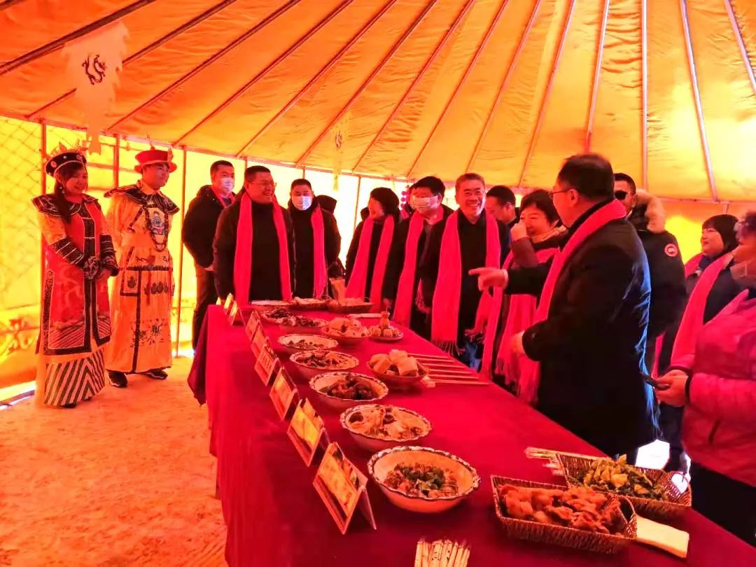 图为二十家子满族镇党委书记胡春明致欢迎词 开幕式活动由满乡送福、年货大集、满乡文化演出、满乡特色美食、冰雪竞技体验等五大主题区域构成。 01满乡送福主题区