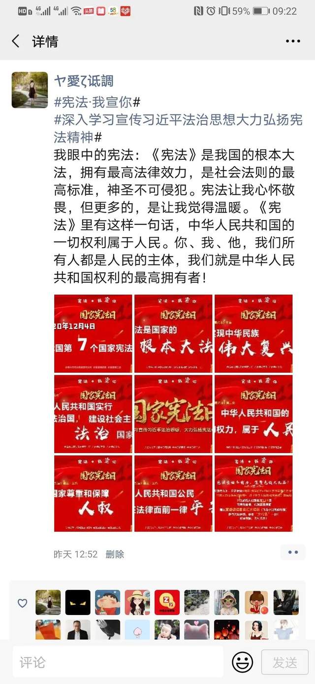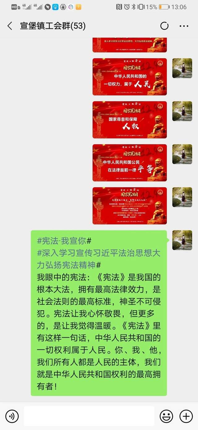 为深入学习宣传贯彻法治思想,大力弘扬宪法精神,宣堡镇以第七个国家宪法日为契机,结合工作实际,积极探索研究,创新活动形式。利用微信APP,动员辖区职工群众带话题发表自身对《宪法》的感悟与认识,以集赞的方式兑换“法治大礼包”。通过“发朋友圈”发动群众力量参与宪法宣传,“集点赞数”扩大宪法宣传影响力,利用“一传十、十传百”的多米诺效应凝聚“我国现行宪法是一部好宪法”的社会共识。其中Mr . L、故渊、木易楊等124名职工通过转发话题、表述感悟率先集满124个赞,并顺利通过宪法知识大闯关,成功兑换“法治大礼包”。据不完全统计,宣堡镇共有630余名职工参与转发活动,点赞人次累积高达36000人次。