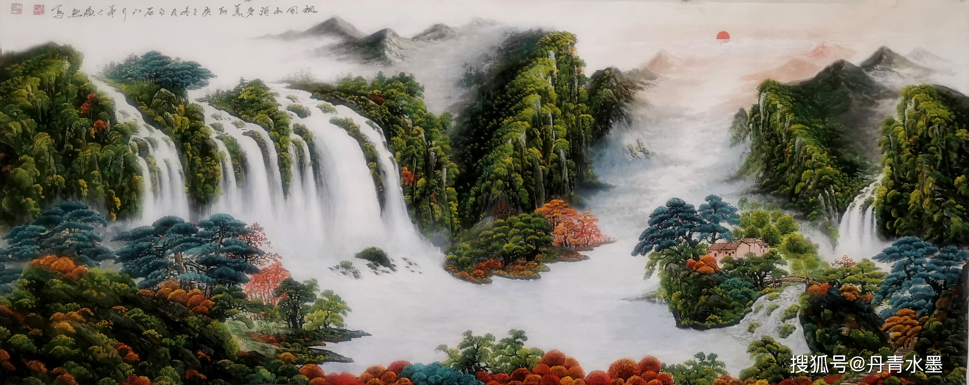 创意山水画以水为道、以墨为法、以色为器、以云为韵,将现实中的山水画赋予人的情怀和创作理念,构建了笔墨色彩相融相益的全景模式,上突有巍峰,下瞰有玲阁,树木崖间落,宾主层次多,远近云为伴,高低水声和、虚实藏露点,远观大气蓬勃。其能量源于水,以水为道,不争却主长;能量源于山,金石落地,财生有源;能量源于树,四财并生,甘露降人间;能量源于云,云动境迁,春意盎然。强化了室内的文化视觉和空间视觉,从而打造出适合房屋主人居住的和谐环境。 他的画里,风水并不是玄学,而是实实在在的科学,因心转境,因境运成时,人生若是懂了风水,一切圆融无碍,心无挂碍,可畅得时与运!障碍得以化解!这就是创意山水画的文化价值和普世功德! 得一卷,道不远人!立一轴,时来运转! 著名书画评论家 罗成 2020年3月2日