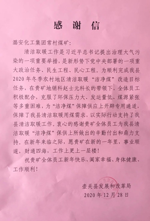 数九寒天,气温骤降。对于山西省长治市壶关县的两万多户村民来说,心中却温暖如春。12月28日,壶关县发展和改革局局长张世兵带着壶关人民的感激之情,来到潞安化工集团常村煤矿表达谢意。