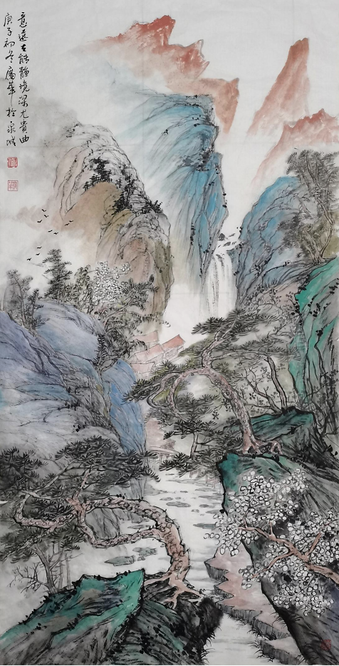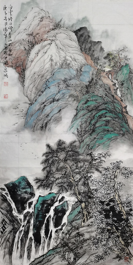 【艺术家简介】 卢广华,山东济南人,擅长山水、花鸟,毕业于中央美术学院国画系,进修于清华大学中国画高研班。2015年成功地举办了个人画展,多次赴太行山、九华山、黄山、泰山等地揣摩山水的神韵,逐渐形成了北派山水的雄厚风格。多次获国家级大奖,《巍巍太行》获全国金奖。现为山东彩墨艺术研究院院长。