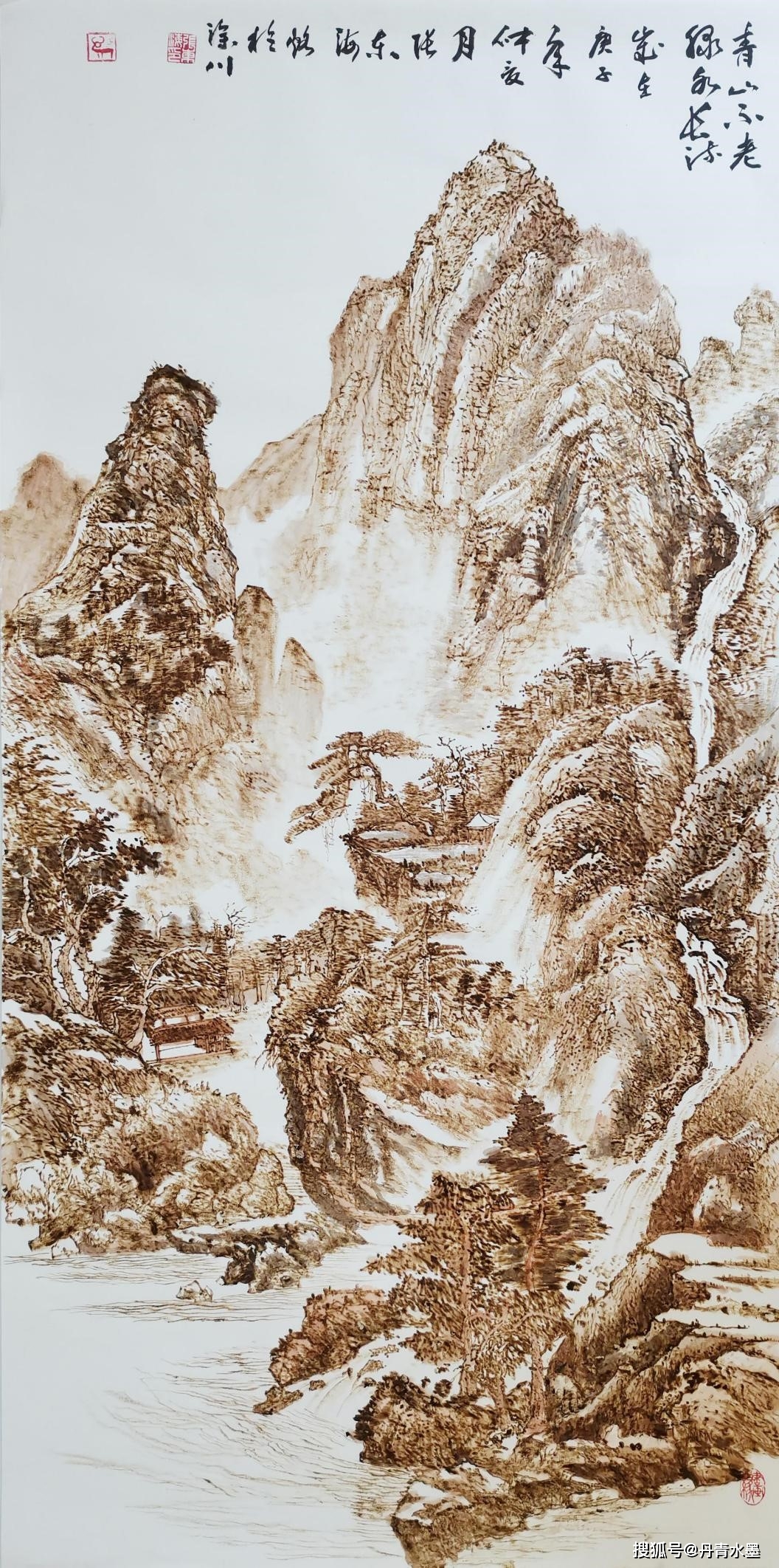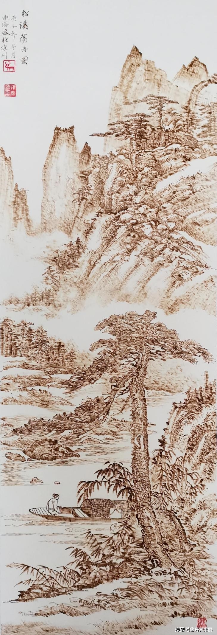 书画同修铸造诣,气韵生动法正宗。他的画在水气的缭绕下,显发出虚实相应气脉存在,山水尚古,却不仿古,有现代元素的构入,所以脱离匠气,直达丰神。在这个红尘滚滚的时代里,他用笔墨的清凉构造了可以安住人心的桃源世界。外师造化中得心源,不但山水气韵生动,花鸟也是传神之功,浓墨重彩画品梅,一枝独立,目面独有,馨香不畏寒凉,精神自有卓立!还可以执铁烙游走宣纸、木板、帛锦,用掌握精致的火候作烙画的神品,火针刺绣的功力,正是文化遗产的绝能!唯有大国工匠,才可以像他这样依匠而济神,走上书画艺术的峰巅,一览众山,畅神文化! 著名书画评论家 史峰 2019年12月31日