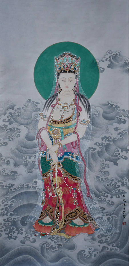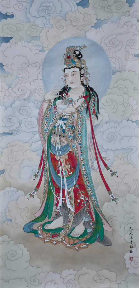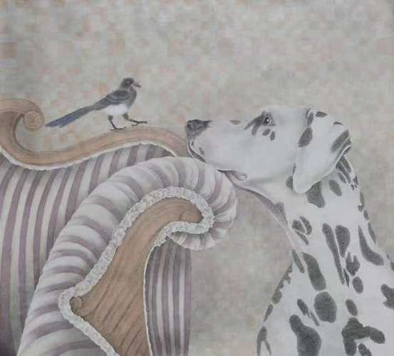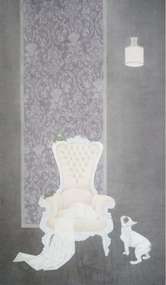 从中国画的传承史上,中国画可以把纷繁复杂的客体,如自然的色彩、明暗、体积等都过滤为“空白”,而中国画又恰恰是以空白为基色,在空白中大做文章。空白就成了意象的重要内容,不仅可以成为意象的空间,还可以成为其他意象的物体。空白可以在画面中作为意象的江河、大海、平原、山川、烟霞、云雾、瀑布、衣服、皮肤、器皿等一切客体,只要画面需要,都可以把客体中丰富的色彩、浓淡、明暗、体积等过滤成空白,从而达到意象性的目的。空白不仅可以当做烈日炎炎的白昼,也可以当做伸手不见五指的黑夜,随着画家给画面主体限定的范围而变化。它既是无形,也是有形,这形存在于观赏者的联想之中。空白是人的心理空间,它的价值在于虚胜于实、无胜于有、简胜于繁。因此,要解读画家施文虎的工笔画作品,就要从他的色彩构造和心灵变化去透析。在画家作品的整体画面上,呈现最多的是色块的渐变构造,其中并不是没有线条的构造存在,而是画家特意用色彩去把线条模糊、淡化,内藏于画中色块间,然而在色彩上更好的去和谐整个画面,使时空的穿透性更加的强烈,在空白中染变空间虚实,在模糊的无形中塑造有形,以达到自身感受之中的意象空间,这样的意象充满穿透性、可变性和塑造性,演化高层次的意境。