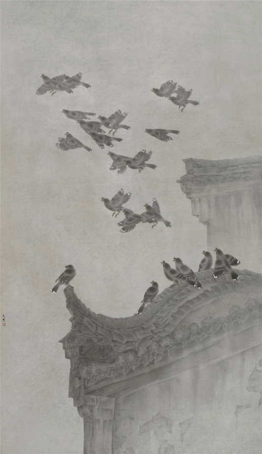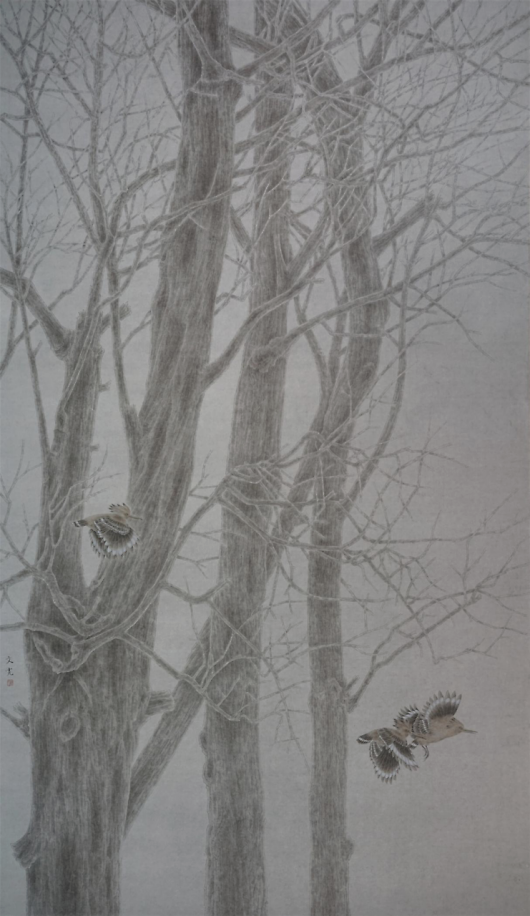 因此,要了解画家施文虎的语境,弄懂中国画的本质特征,首先就是要感受画家个体的心灵体悟。如果这些作品,画家都放弃了自身的语言和体悟,势必会落入俗套当中,由此从作品中不难看出,画家本身时刻都在真实世界中寻找最直觉的感受。或者说,越是远离正常视觉的作品,就越具有本质意义上的真实,越是在对象中直接感受到的情感符号,就越是触动人的内心。画家要表达自己的思想和感情,就需要熟悉各种不同的语言表现方法,才能使胸中的意蕴变为可视的艺术形象。