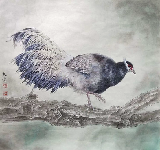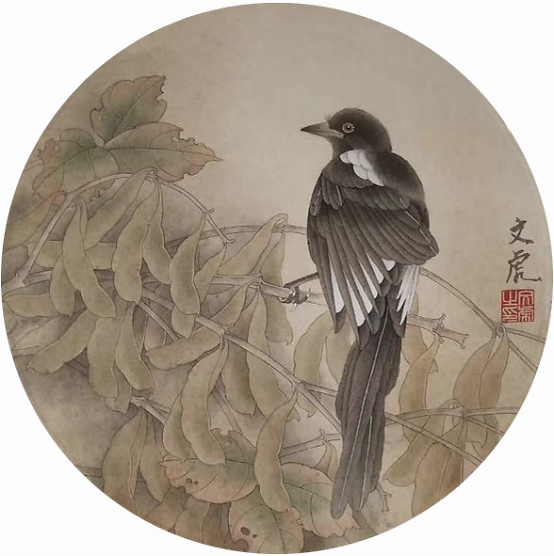 从中国文化上去解读中国画,中国画并不只是呈现人物、山水、花鸟、走兽和虫鱼等形象,还有诗句、书法和印章的相互搭配。这就表现出中国画本身具有丰富的文化元素,这在世界绘画史上是独一无二的。我们再看画家施文虎的作品,大多数都是在画面题上仅有的书名并盖上印章,这是传承于宋元时的作法。宋朝时的画家在画面上书名不用印,用印不书名,二者用其一。到了元朝时,画面上既书名又盖章,一直沿用至今。所以说,画家施文虎的作品在整体上,画面效果还是很有复古的意蕴存在。中国画除了用笔墨、诗文主体语言作画,还用印章的语言去进一步调节画面的意境和思想感情,在古雅文气的画面上加盖一方朱印,能起到画龙点睛的特效。诗书画印的调理搭配,形成了中国画独特的艺术风格,给中国文化增添了一笔浓重的色彩,呈现了丰富的中国文化内容。