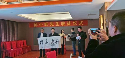 2021年1月9日,中午十一点,著名书画家孙小旺先生收徒仪式在荣元酒家举行,为响应国家抗击疫情的号召仪式一切从简办理。河南省省委相关领导出席了此次收徒仪式,对孙小旺先生喜增全维铭、范铧二位高足表示祝贺。