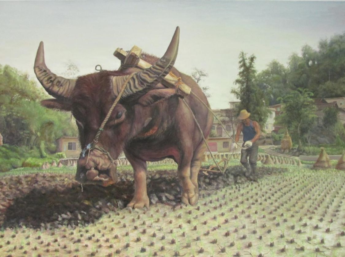 专业精湛 画风多元 ——记著名画家潘仕业 绘画风格可以成为艺术家的成绩见证,但是真正有攀登意识的画家,并不会让风格固化为单一的范式。吴冠中就有这种攀登意识,林风眠也有这种攀登意识。观赏著名画家潘仕业的绘画作品,了然可知他也是不愿意受风格拘泥,勇于在丹青浩空里作多长天遨游的大手笔! 要论某一种油画风格,潘仕业专业段位极高的超写实技法是风格!看他的牛耕图,可以被精湛的造型能力所折服,整个面里处处都是光影塑造的精益求精,严谨的专业创作态度引导着非凡的专业精神,起一笔,落一笔,都是法不欺人,功不欺世的真功夫!