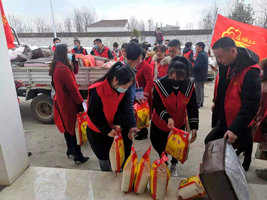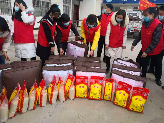此次活动物质有河南明丽龙商贸有限公司总经理孙海明捐赠棉被46套、大米46袋以及义工联合会宣传部长孔军栋捐赠大米10袋。