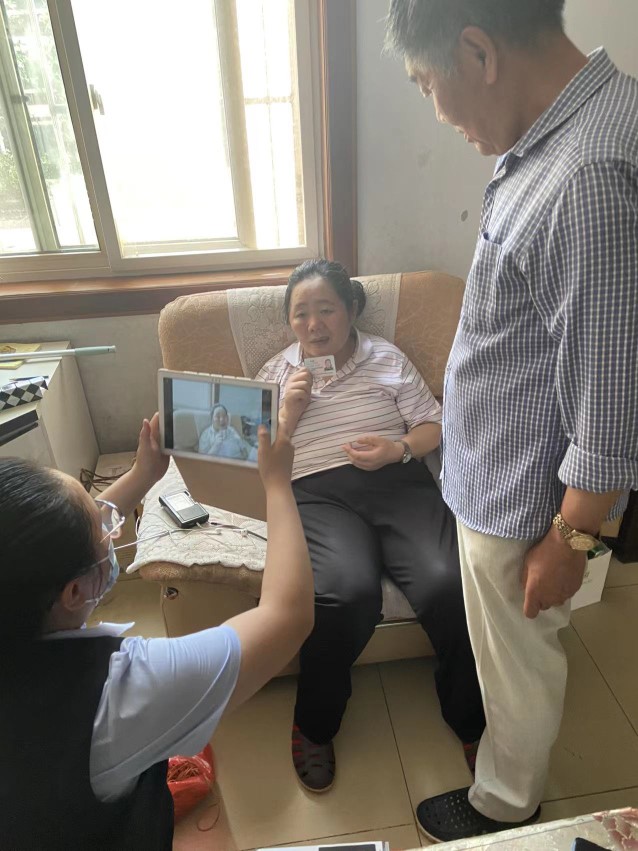 顶着炎炎烈日的日照银行营业室党支部志愿服务队老党员杨暖出发了,目的地营子社区。虽然今天是周六,早上8点30该网点接到群众要求上门服务的电话,得知该客户的女儿因交通事故致残无法到现场办理社保卡业务,急需提供上门服务后,党员志愿服务队的杨暖就开始着手调试上门办公电脑等移动设备,准备就绪后带着大堂引导员就出发了。认真核对客户的电子身份信息、及时维护个人金融账户信息、依照流程对客户拍照、合照、签字确认,一套工作流程行云流水的完成,得到了客户本人及家人的一致好评与感谢。
