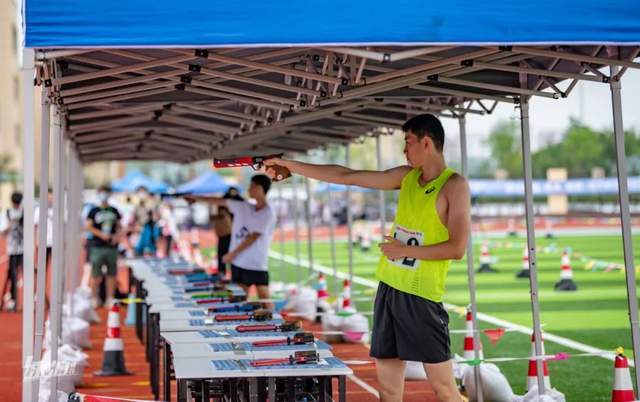 (王军 摄) 现代五项(Modern Pentathlon)是由马术、击剑(重剑)、射击、游泳及跑步5个单独的运动项目组成的一种综合性比赛项目。女子项目被列入2000年奥林匹克运动会。 图:速拍体育 刘晶 |