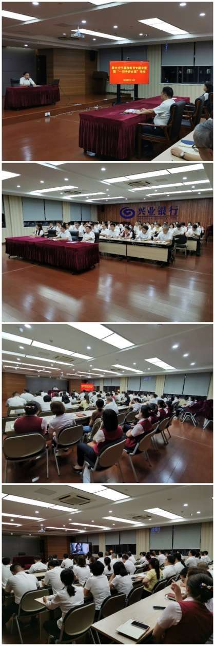 9月14日晚上,兴业银行滁州分行召开廉政教育专题培训和一把手讲合规活动。全体员工观看了反腐专题片《零容忍》中和银行、滁州相关的部分内容,分行负责人管凯同志做了《党建引领业务发展,合规护航行稳致远》的合规专题讲话,强调合规是银行的生命线、是银行最宝贵的资产、是银行的竞争优势,要求全行员工高度重视员工行为管理和案件防控工作,真抓实干,形成合力,防微杜渐,为分行转型发展创造良好的经营环境。
