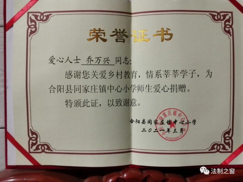 据了解,该活动发起人乔万兴系同家庄镇南龙亭村人,1985年7月考入同家庄镇初中(该校现在为同家庄镇中心小学),他在该学校读书有不到一学期就转到韩城市龙亭中学读书。小学五年级时他就留级,初一时再次因为学习成绩差而留级,在初三没有读完就辍学放羊。1991年12月他参军入伍成为一名水兵,经过自己的12年在部队生涯的拼搏荣立三次三等功、五次获得优秀士兵、获得荣誉证书48本、锦旗20面。由于吃了没有文化的亏,在今年3月10日乔万兴到自己曾经读过书的学校门口发现:曾经上过学的南龙亭小学、龙亭中学都不存在了,唯一自己上过的同家庄镇中学还在但是已经成为小学。乔万兴想:“我要为自己的母校献出自己的一点爱心才对呀!”他的想法得到《法制之窗》驻江苏负责人王国平、同家庄镇南龙亭村左卫增、乔志朝、乔志显的积极响应。五名爱心人士共同出资购买了一批学习用品。左卫增接受采访时说:“我就是没文化,到了社会只能干一些苦活脏活累活,我参加乔万兴发起的这次爱心活动主要就是用我的亲身体会教育学生好好学习。不过我很庆幸的是我儿子学习很好,这是我的自豪。”乔志朝、乔志显接受采访时说:“我们两也是没什么文化,这活动很好,以后我们应该多关心乡村莘莘学子。”据了解,乔万兴在1995年期间就用邮寄的方式从部队给自己的母校同家庄中学捐赠过书籍。