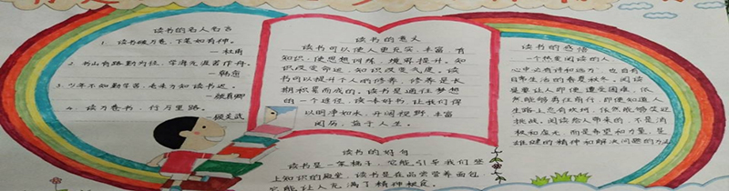 “读一本好书就像和高尚的人对话。”通过这次手抄报活动,孩子们记录了阅读的收获,学会了动手和动脑,加深了对所阅读的整本书的理解,分享了自己的感悟,增强了表达的自信心。在阅读中发现自己的聪明才智,在阅读中坚定自己的意志品质,在阅读中接力传承爱的力量。