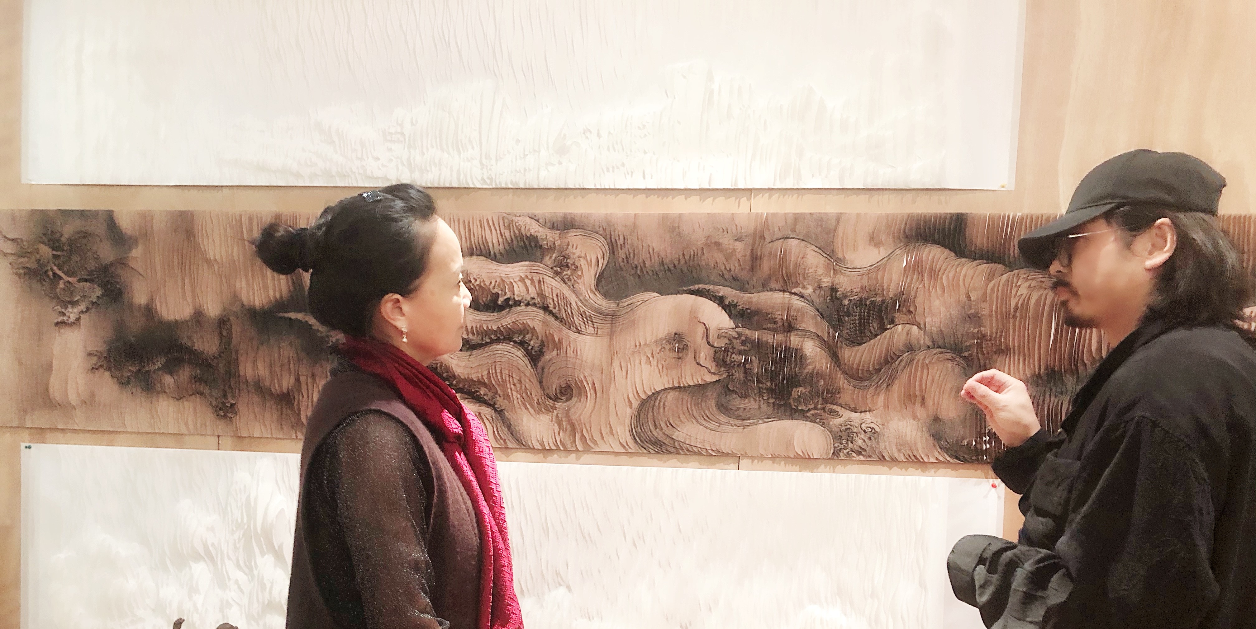 这本龙鳞装书籍,特殊装订的一面书页仿佛整齐排列的鳞片,轻轻翻动,一幅画会慢慢消失,另一幅画会逐渐显形。“这是很有禅意的一种表达方式。同时再去阅读里面的经文,会给人一种身临其境的感觉。”十多年研究龙鳞装,张晓栋恢复并改进唐代龙鳞装装帧技艺,获得书籍发明专利20多项,还在2019年以特邀参展艺术家的身份参加了威尼斯艺术双年展。之后,张晓栋又耗时四年制作了经龙装《红楼梦》,经龙装是传承中的创新,结合了经折装、龙鳞装两种装帧艺术的优点而成。