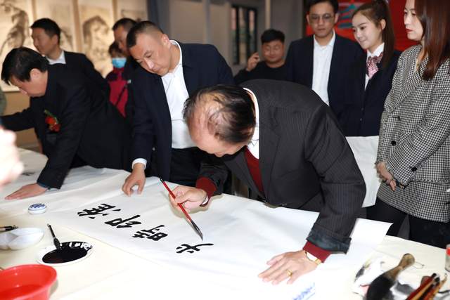 ▲著名书法家胡道华在笔会现场创作