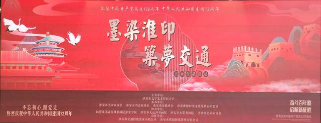 本次展览由淮安市文学艺术界联合会主办,淮安市美术家协会、淮安市书法家协会等单位承办,淮安市大运河书画院等单位协办,淮安市交通控股置业有限公司等单位合作。展览特邀了淮上知名书画家李坤才、杨建琦、杨建全、冯加新、董迎庆、于志祥将作品一同参展。活动中,还举办了笔会。(杨景旭 沈思)