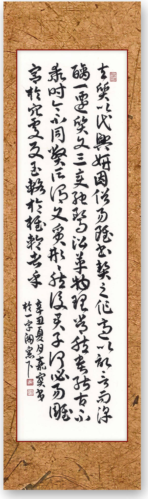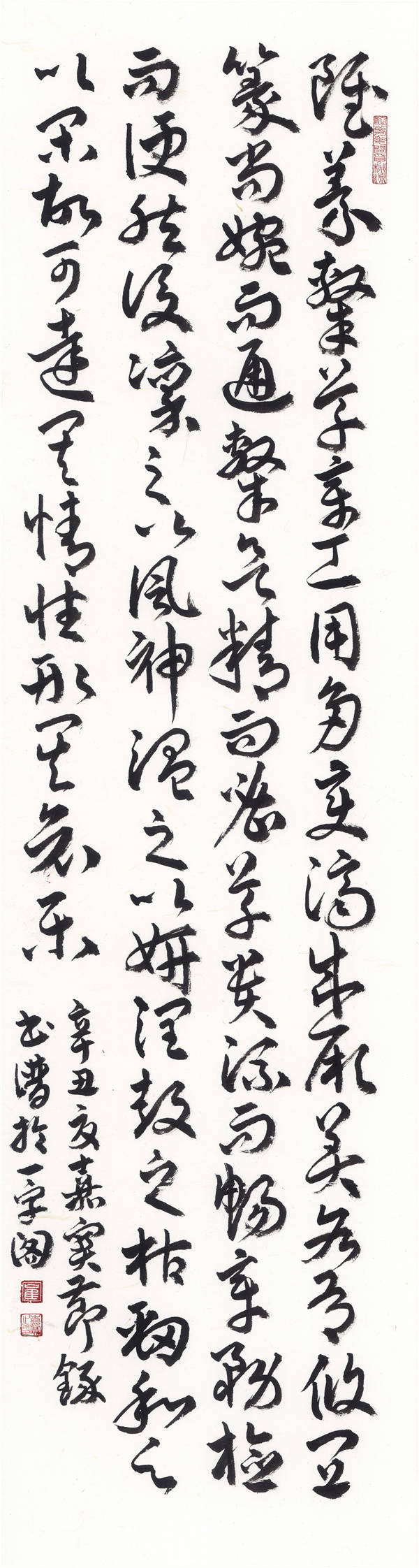 ----矗立于请柬中央,铁骨铮铮,气吞山河,让人隐约可以洞悉,这位毕业于北京大学考古系,幻承家训,家学渊源的知识女性的书法水准。嘉宝女史自便临习祖帖---距今1700年陆机《平复帖》,以及皇象《急就章》,取法高古,谙熟《书谱》,厚古人不簿今人,对近代书法集大成者之如沈增植、王蘧常、郑颂先更是心有戚戚焉而有所斩获,当然,这一切都源自其慈父如琢先生言传身教,谆谆教诲。