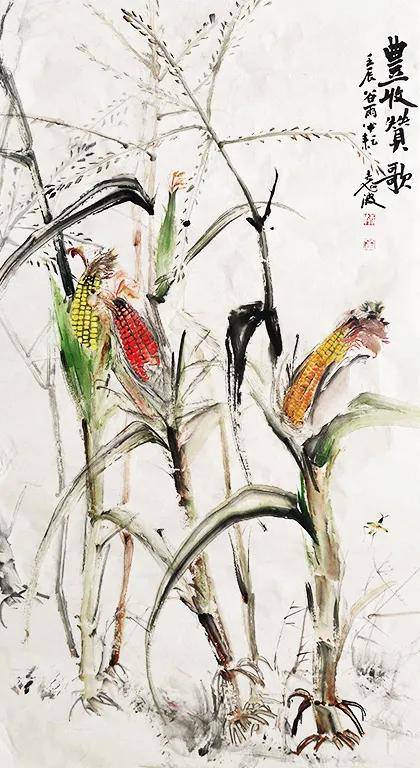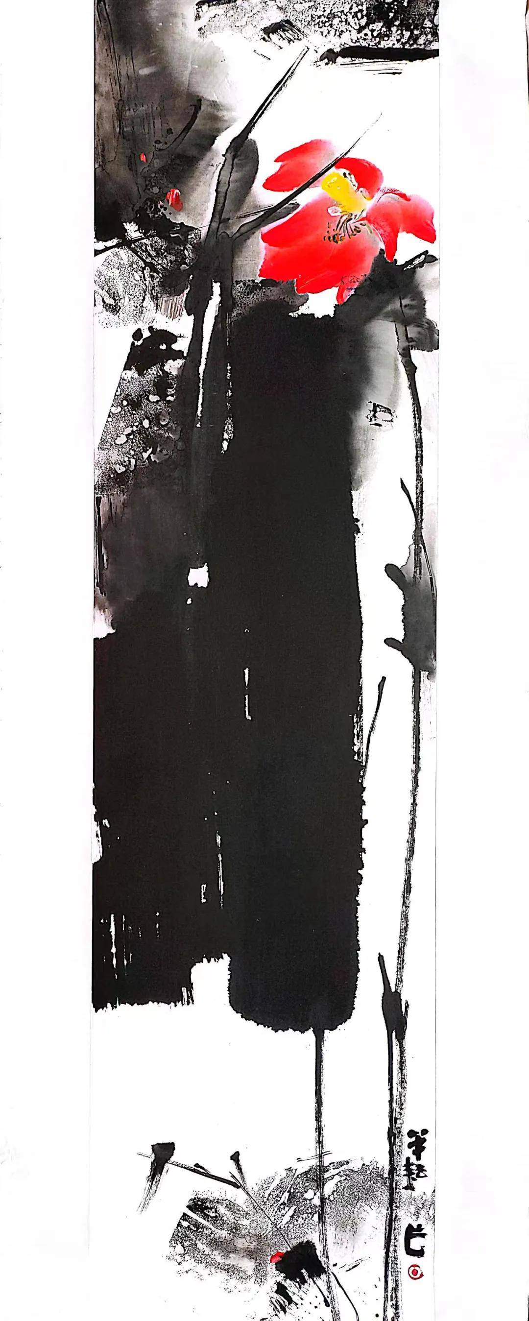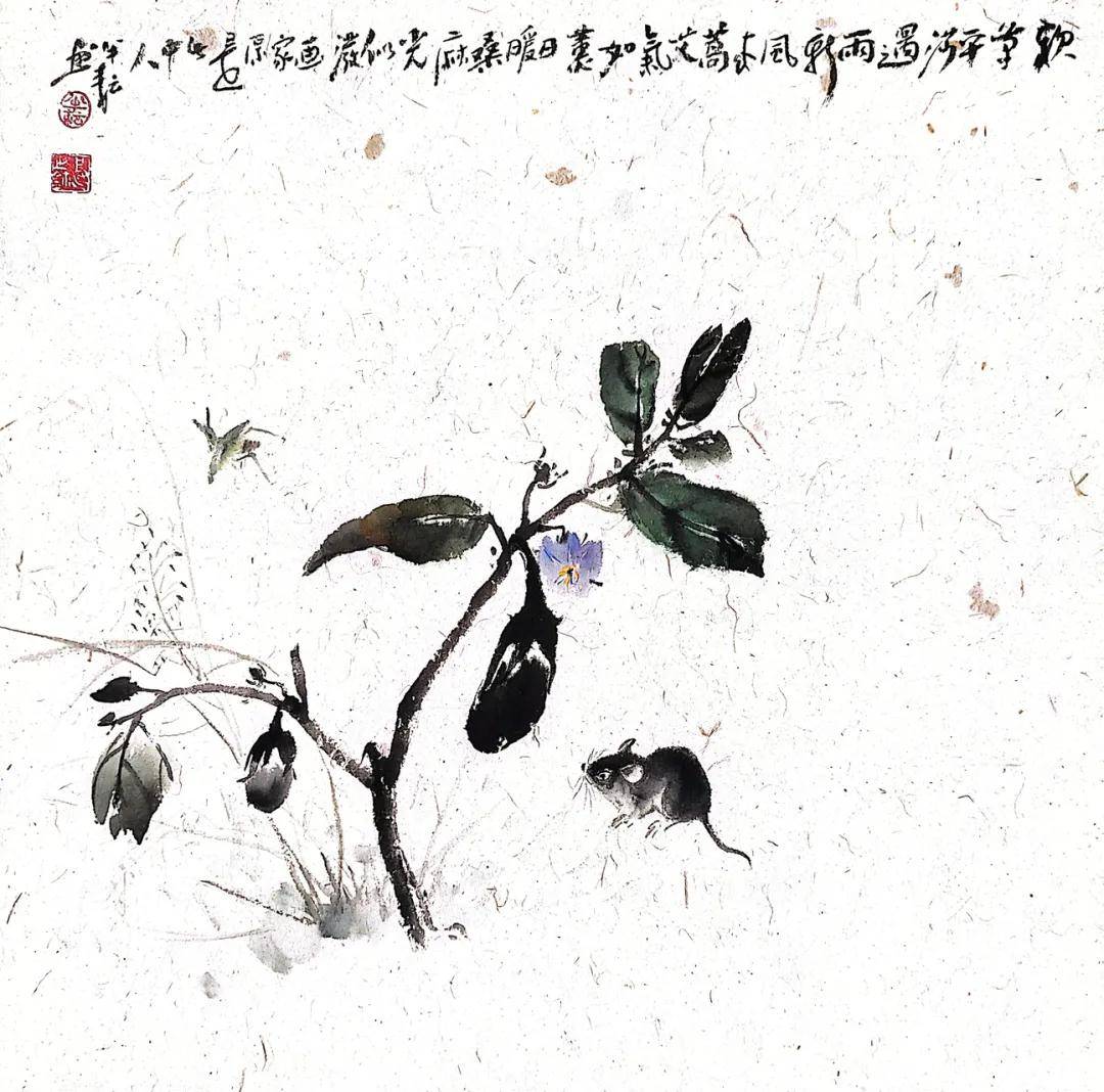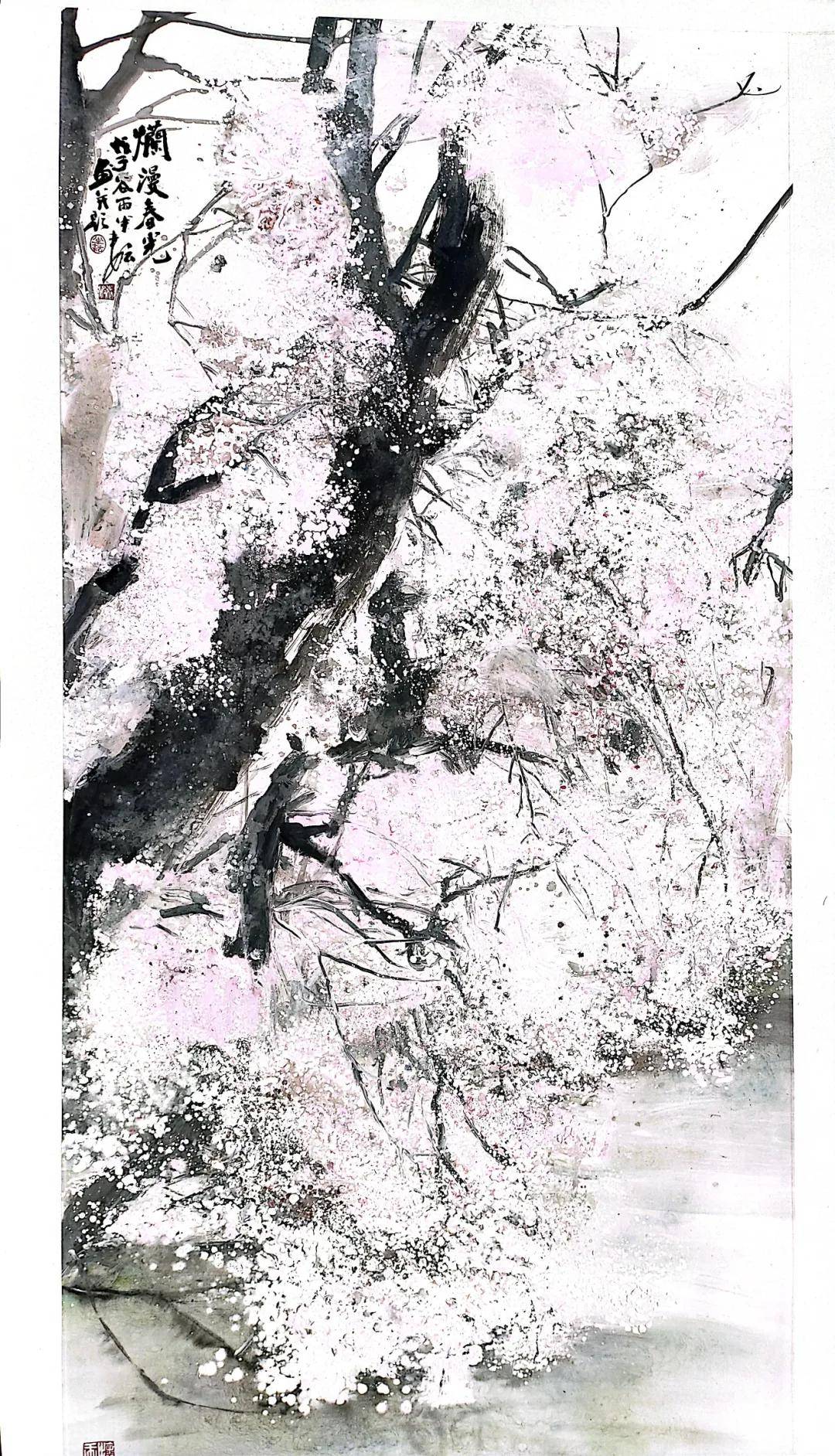 袁波画风的变化是在日本定居10年之后。这个时期,他开始画恬静的花朵,画各种鲜花间流淌的春意,蜜蜂的低鸣变得轻柔,秋英在枝头也不再伤感。虽然画得是写意花鸟,但日本画中的拘谨和刻板却没有影响到袁波,中西方文化的交融,让他的画风愈加洗练旷达,在他的艺术境界里看不到狭窄和文弱。