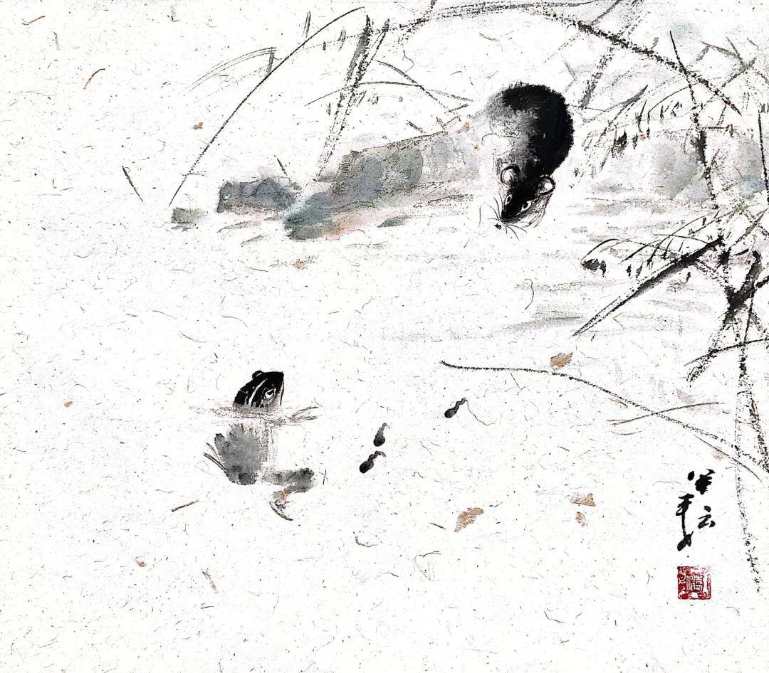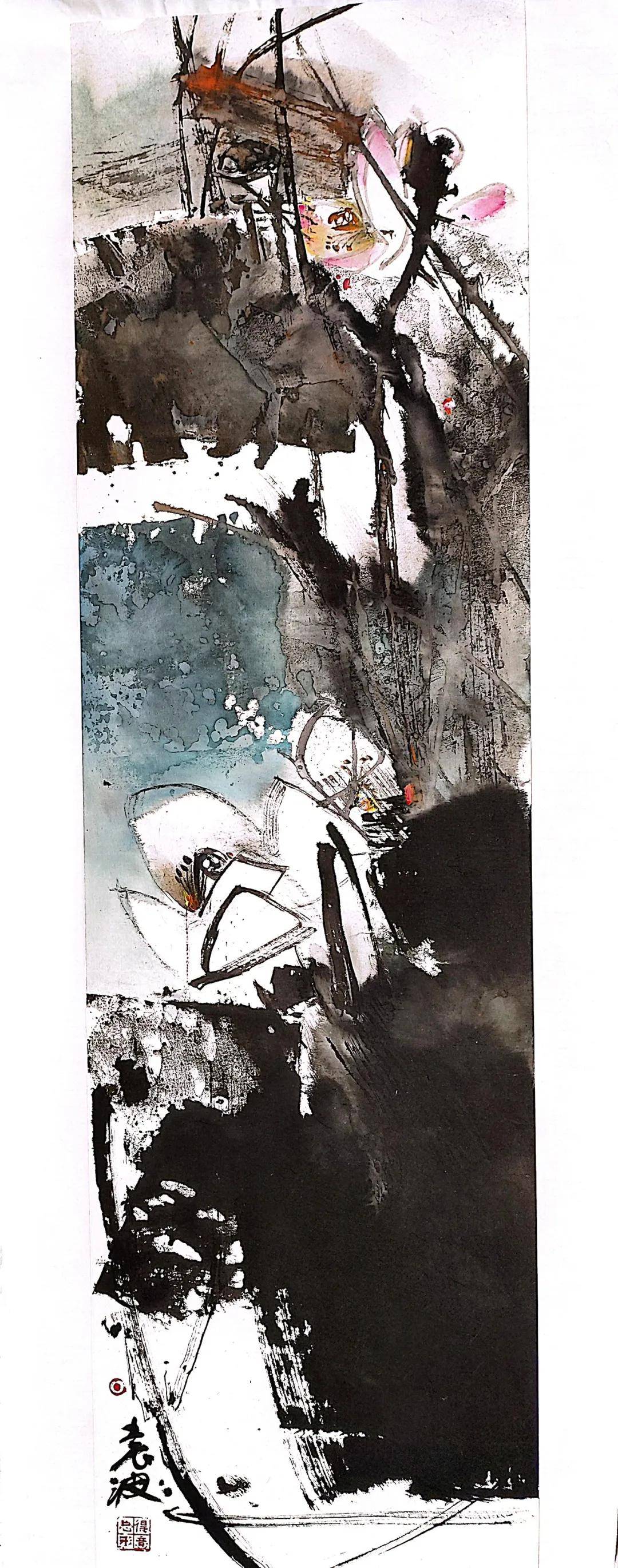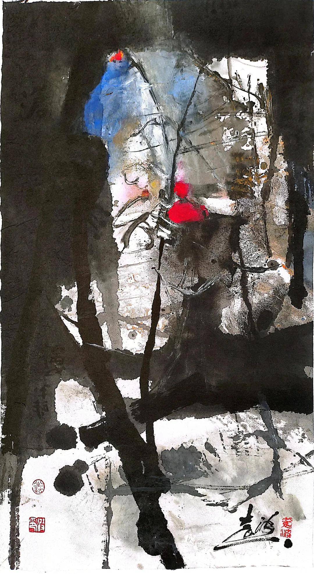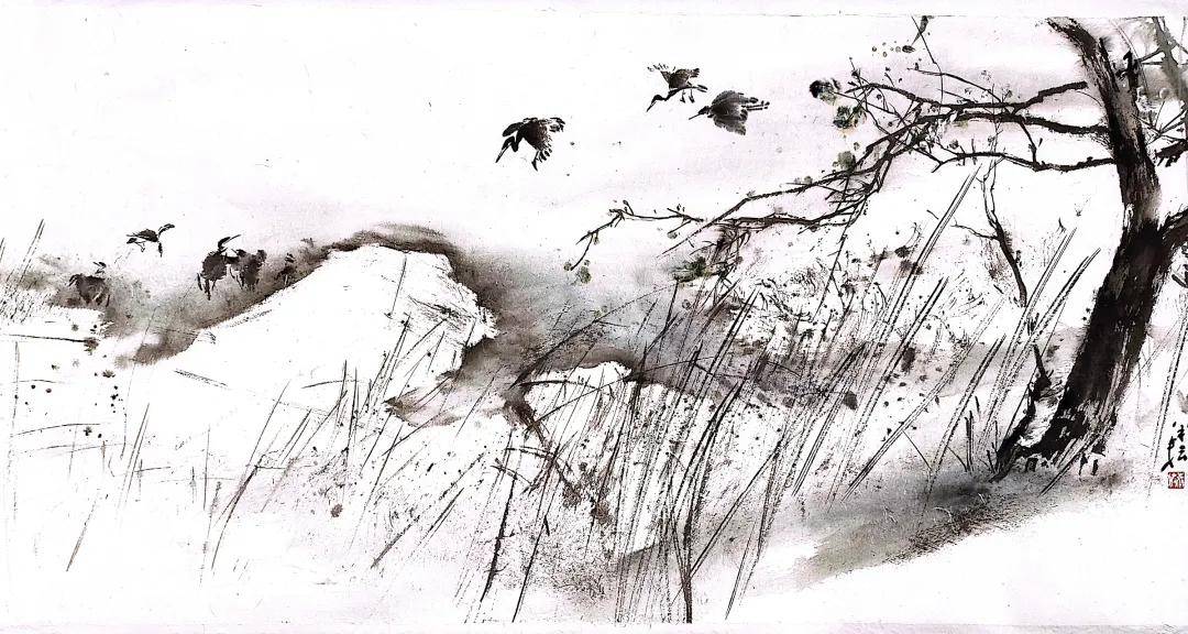 老话说,天无绝人之路。正当袁波一筹莫展之时,他的一幅画在加拿大的国际艺术大展上获了大奖,获得了100万奖金!从天而降的喜事使他的生活有了转机。后来我问他,那幅如今被收藏在大洋彼岸的画内容是什么?他说,是寒鸦孤雁,“拣尽寒枝无可依,寂寞沙洲冷”。