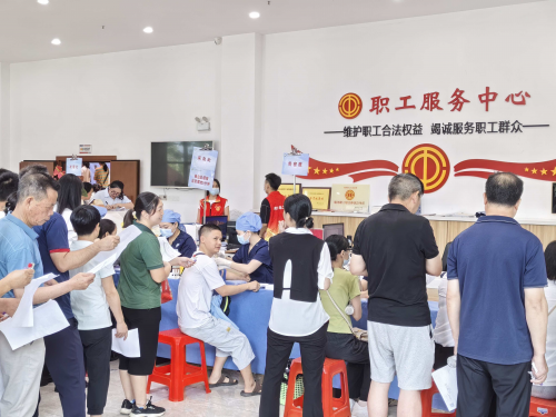 7月16日上午,广东省工人医院赴韶关新丰山区为一线工人免费体检,惠及职工400人。活动进一步增强一线职工的安全感、幸福感和获得感。