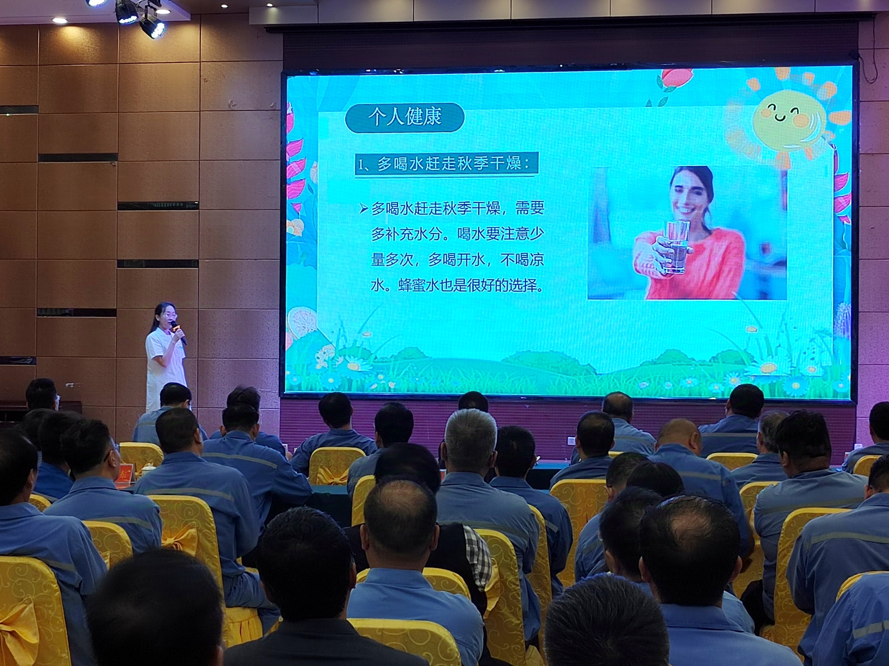 二季度,正值安全生产月,“人人讲安全 个个会应急 畅通生命通道”专场道德讲堂,天脊集团消防救援大队战训科科长和安全工程师现场教学“生命通道疏散演练”,干部职工们学以致用,在实战中掌握应急技能。秋之关怀,守护身心健康。
