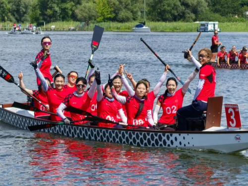 7⽉14⽇⾄20⽇,第十七届德国世界⻰⾈世锦赛在德国勃兰登堡举行。由潍坊市体育运动学校培养输送的张杰和张嘉颖,助力聊城大学龙舟队包揽U24 三个组别11个比赛项目的冠军,在16支中国参赛队伍中夺金数量名列首位,为祖国和山东赢得了荣誉。世界龙舟锦标赛是由国际龙舟联合会(IDBF)主办的国际最高级别龙舟赛事,本届比赛在德国勃兰登堡哈维尔的比茨湖举行,共有来自30多个国家和地区的4000余人报名参赛。
