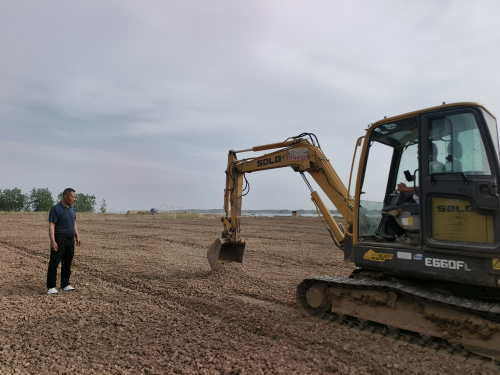 说干就干一直是王会增在基层奋斗多年的工作本色,于是他亲自上阵督工,从4月初以来,每天带领两台挖机、7台翻土车将村庄内河塘清淤出来的多余泥沙运往运河码头进行覆盖,经过30多天艰苦奋战,现下60亩土地已经覆盖整理即将结束,并开始筹备播种工作。