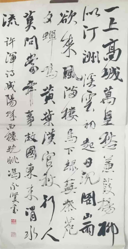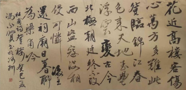 在书法艺术的毕生求索中,冯永贤始终秉持 “以文养墨,以学润笔” 的创作理念。他自幼浸染书香,遍临历代碑帖法本,深研魏唐楷书的端严法度、汉隶碑刻的金石气韵、二王行草的灵动风神,兼融西北大地的雄浑气象与河州文脉的温润底蕴,终成诸体兼擅、自成一家的笔墨风貌。其楷书取法魏唐,笔画沉实刚劲,结体宽博端庄,骨力洞达而不失灵动;草书纵逸跌宕,提按顿挫间情驰神纵,墨色浓淡枯润交替,尽显笔墨节奏与抒情意趣;行草作品酣畅淋漓,行气贯通,苍劲老辣的线条与清旷悠远的诗意高度相融,于传统法度与个人意趣间达成了精妙平衡,形成了刚柔相济、朴拙大气,兼具文人书卷气与陇原雄浑气的独家书风。作为被授予 “著名国学学者” 称号的书家,他始终以深厚的学识涵养笔墨,将宏大的文化命题融入具体的笔墨叙事,让每一幅作品都既有对传统的敬畏坚守,又有鲜明的时代表达,真正实现了 “守正而不守旧,创新而不逾矩”。