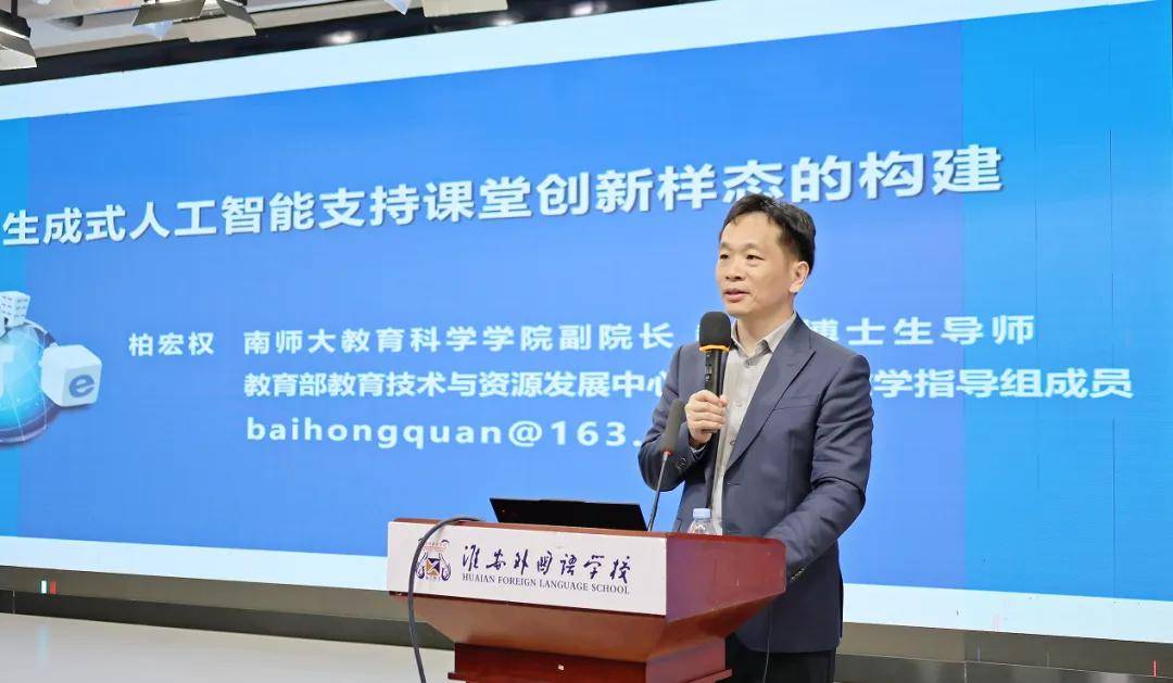 南京师范大学柏宏权教授以《生成式人工智能支持课堂创新样态的构建》为主题做了专题讲座,系统阐述了数智技术与教学融合的路径,为教师向“AI智慧导师”转型提供了理论指引与实践策略。