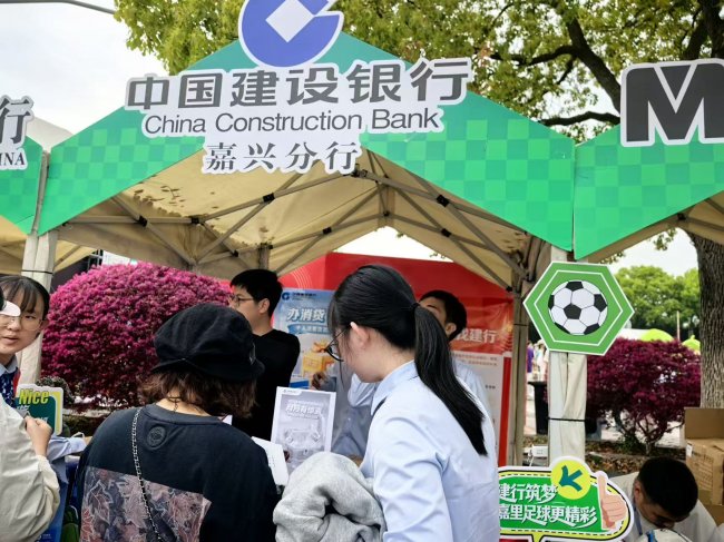 4月6日,2026年“吴越杯”浙江省城市足球联赛揭幕战在嘉兴体育中心火热开赛。建行嘉兴南湖支行张富清金融服务队借势开赛热潮,走进赛事现场,搭建金融服务宣传点位,将专业金融服务与暖心惠民举措带到群众身边,为这场体育盛宴增添金融温度。