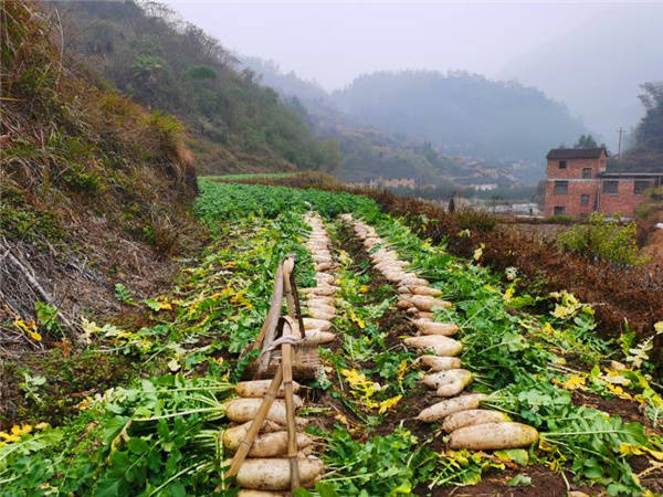 “今年有机种植标准的农产品达到了50万斤以上,花菜就剩这个大棚了,高山萝卜已卖了1万多斤。以前这个时候都闲着,现在一年到头忙得很。”12月26日,在武义县雅绿茶厂基地一个蔬菜大棚里,张华沛一边割着花菜,一边乐呵呵地说。 当日虽然天寒地冻,有的地方还结了冰,山头上还有积雪,但在雅绿茶厂基地的大棚里笔者看到一个个淡黄色的花菜隐藏在绿叶中,青菜、黄叶菜长势茂盛,白嫩的萝卜在梯田中每个基本都有四五斤重……一个生产茶叶的,怎么种起蔬菜来了呢?看着笔者一脸的疑问,张华沛从单一生产茶叶到瓜果蔬菜综合开发的过程娓娓道来。