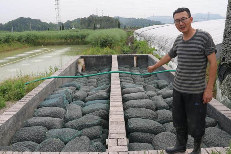 随着育苗技术水平不断提高,前景越来越好。2014年年初,朱韶华夫妇拆除了设施落后的简易竹棚,投入5万多元,采用钢管搭架,育苗池也扩大到了576个。在金华市科技特派员、金华职业技术学院教授、淡水珍珠养殖专家张根芳教授的指导下,建成了自动化供水循环系统。通过该系统,尾水从沉淀池流向珍珠蚌吸收区,再通过过滤坝,流到曝气池,最后流到生态池,处理后的水先保证基地的需要,有多的再分散流向基地外界。其运行监管实行“镇+村+主体”责任制,确保有效运行,禁止直接排放。确保了环保,增加了效益。