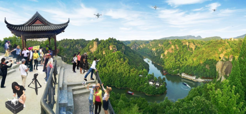 以小见大,全面开花。 近日,新昌县天烛仙境入选浙江省森林康养基地,为我县的旅游休闲度假又增添了浓重的色彩。梁樟军从事旅游业经营二十多年,从最初投资长途客运班车、旅游车队起,2002年创建浙江省新昌旅行社有限公司,2004年经营富豪大酒店,2008年又接手天烛仙境景区及民宿农家乐的提升改造与经营管理,逐步形成了集行、游、吃、住为一体的一条龙服务,对当地形成小县大旅游起到了引领的作用。 走进天烛仙境,奇岩、怪石、索桥、栈道、瀑布、寺庙尽收眼底,让人真有“江南小三峡”之感受。该景区虽小,属自然胜境,筑坝成湖后,画舫穿梭,山水如画,美轮美奂,叹为观止。有人说这里是上帝遗留人间的一个大盘景,其实它是诗画新昌一个典型的缩影。号称为天然氧吧、人间仙境。新昌这样的美景很多,只不过梁樟军把它打扮保养得更美罢了。