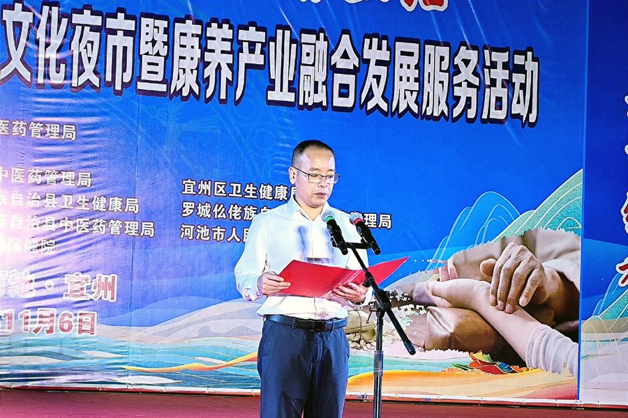 “随风潜入夜,润物细无声。”河池市卫生健康委党组书记、主任谢君理在讲话中表示,中医药(民族医药)文化夜市暨康养产业融合发展服务活动的启动,只有起点没有终点,中医药文化宣传和中医药惠民活动将持续开展,让更多的群众了解了中医药文化和养生理念,让中医药文化更深切地融入到百姓的日常生活当中。 活动仪式由河池市卫生健康委党组成员、副主任、市中医药管理局局长欧乃坚主持,河池市人民政府副秘书长覃广涛宣布中医药夜市开市。(图文|覃新强 王开宝) |