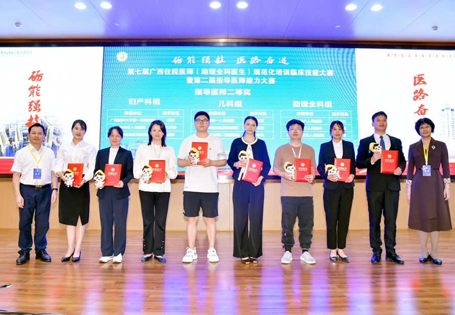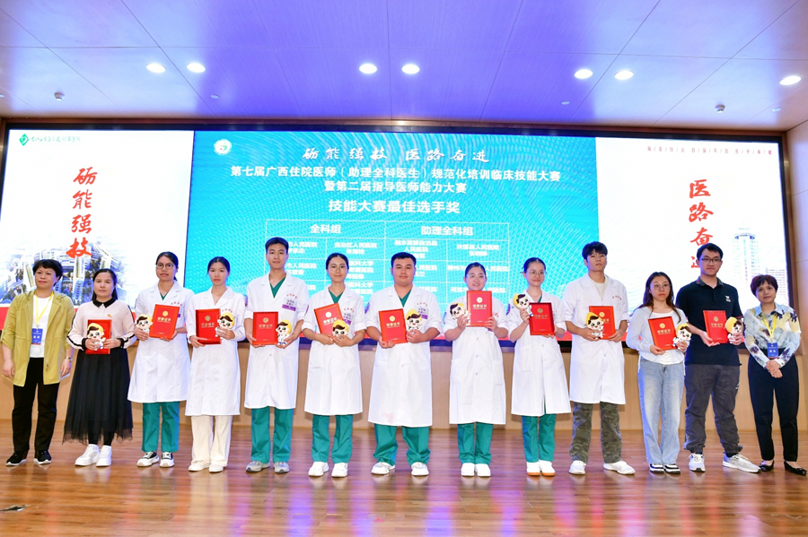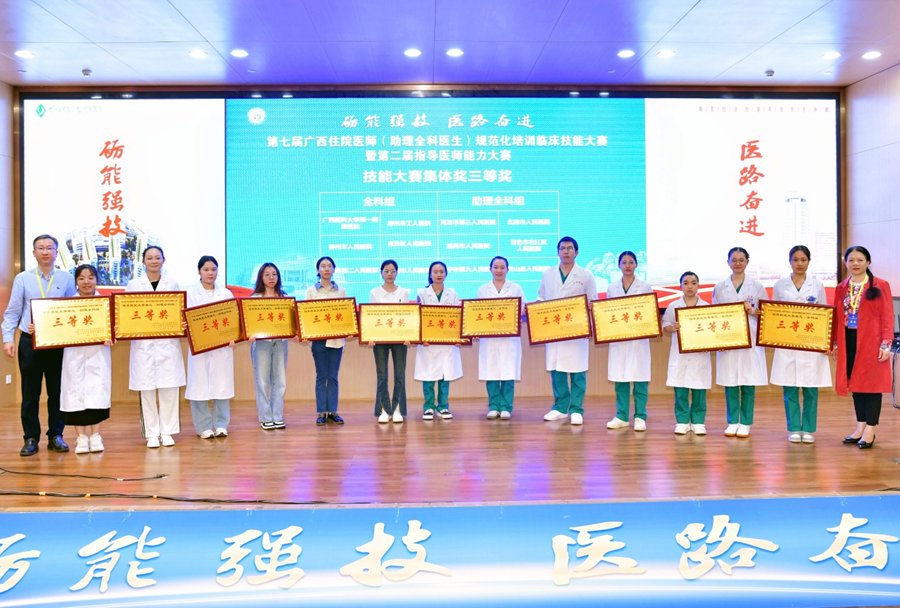 10月30日—11月2日,第七届广西住院医师(助理全科医生)规范化培训临床技能大赛暨第二届指导老师能力大赛在右江民族医学院附属医院成功举办。河池市三医院代表队在广西27家助理全科医生培训基地的参赛队伍及指导医师中脱颖而出,获得临床技能大赛助理全科组三等奖,谭西施主任医师荣获指导医师能力大赛二等奖,罗圣翔荣获大赛最佳选手。![]()