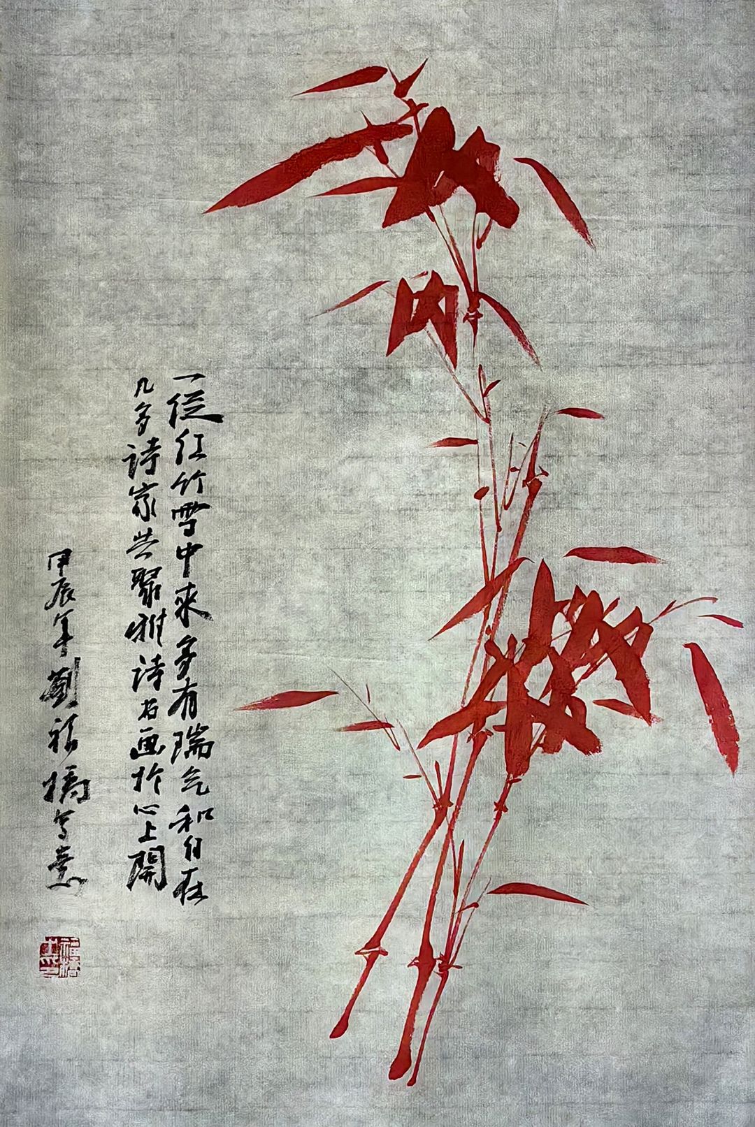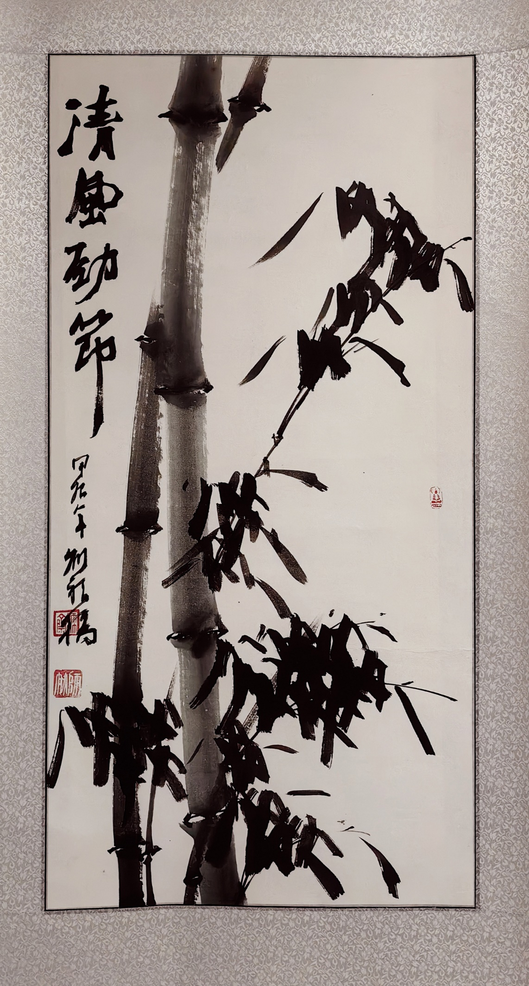 《咏竹》 修竹猗猗,在田在溪, 不卉不蔓,挺拔身姿。 修竹猗猗,在陌在巷, 干森碧玉,叶展翠羽。 修竹猗猗,在川在岗, 朝集霞霏,暮结露霜。 修竹猗猗,在厅在房, 同其风骨,和其德芳。 ![]()