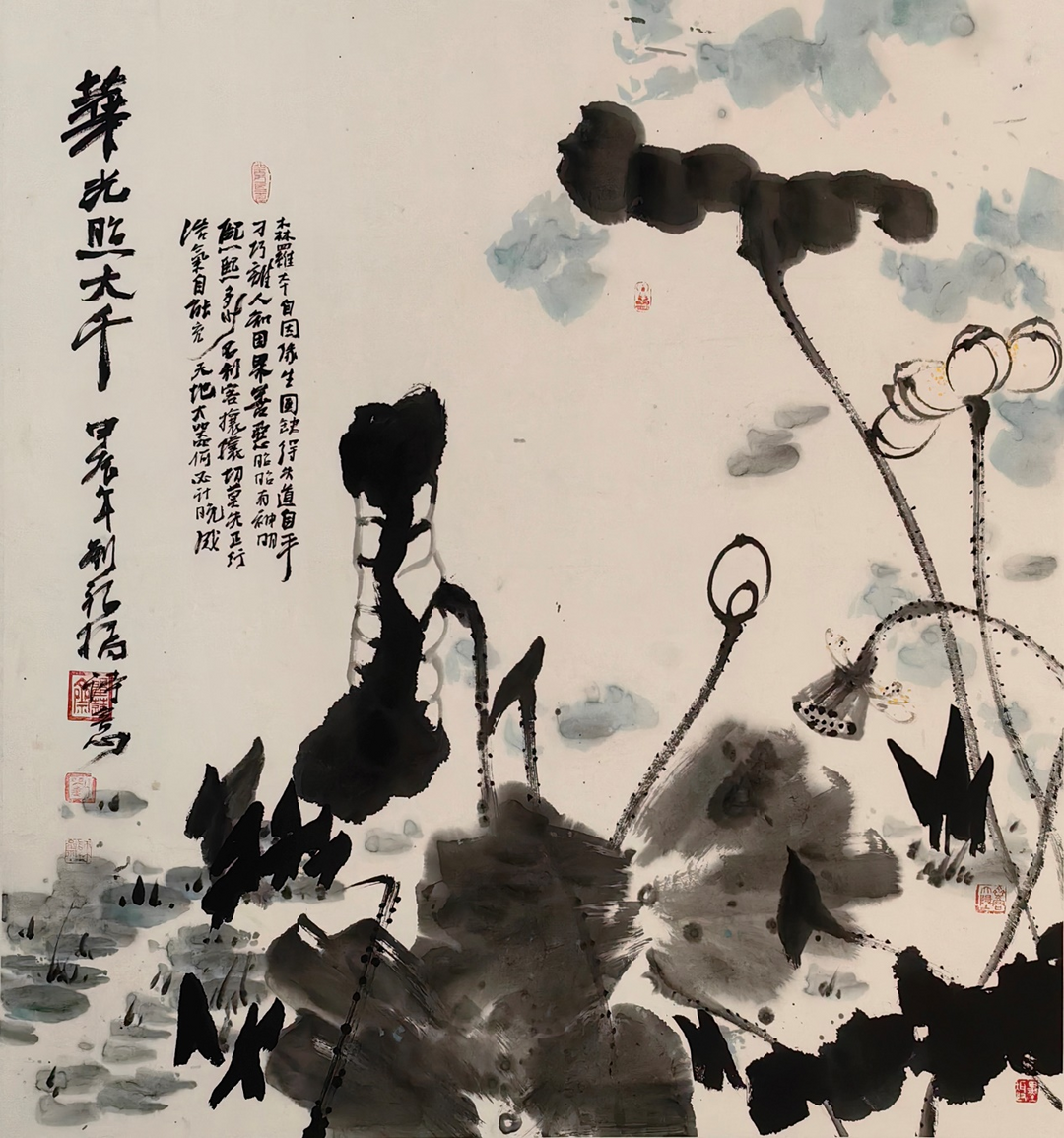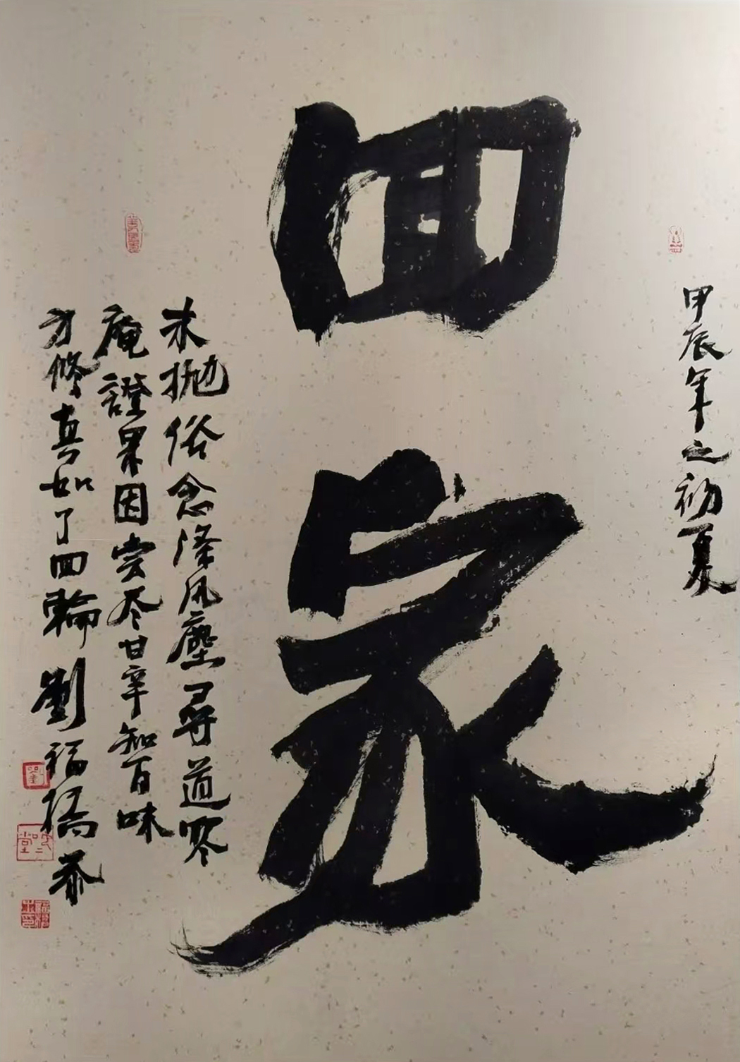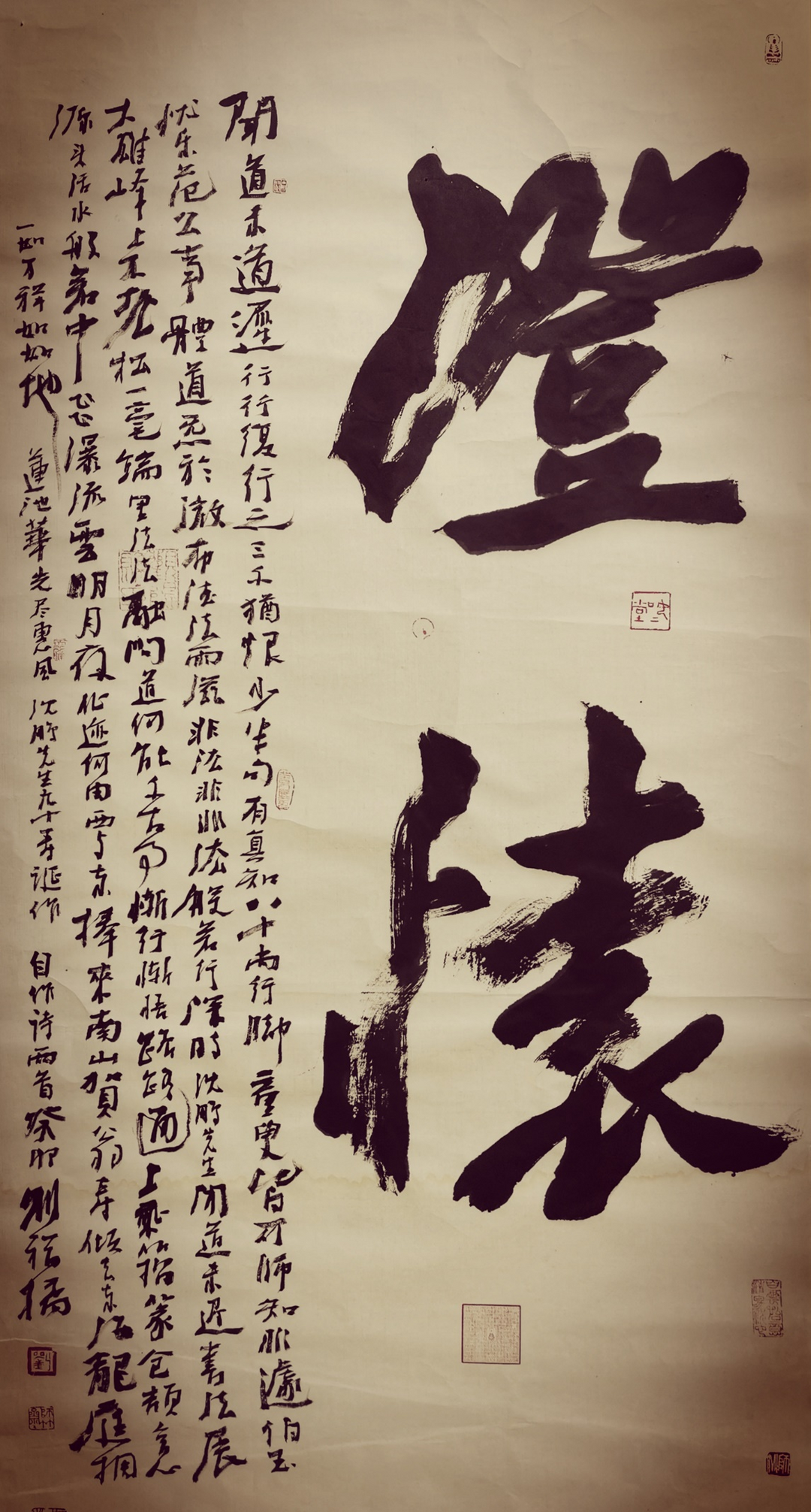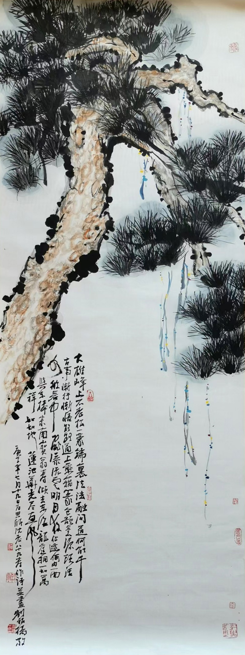 沈鹏先生九十寿诞贺寿诗一首 大雄峰上不老松, 一毫端里法法融。 问道何能千古事, 渐行渐悟路路通。 上乘籒篆仓颉意, 源头活水般若中。 飞瀑流云明月夜, 道心妙圆禅提功。 捧来南山贺翁寿, 倾去东海龙庭拥。 一如万祥如如地, 莲池华光尽惠风。