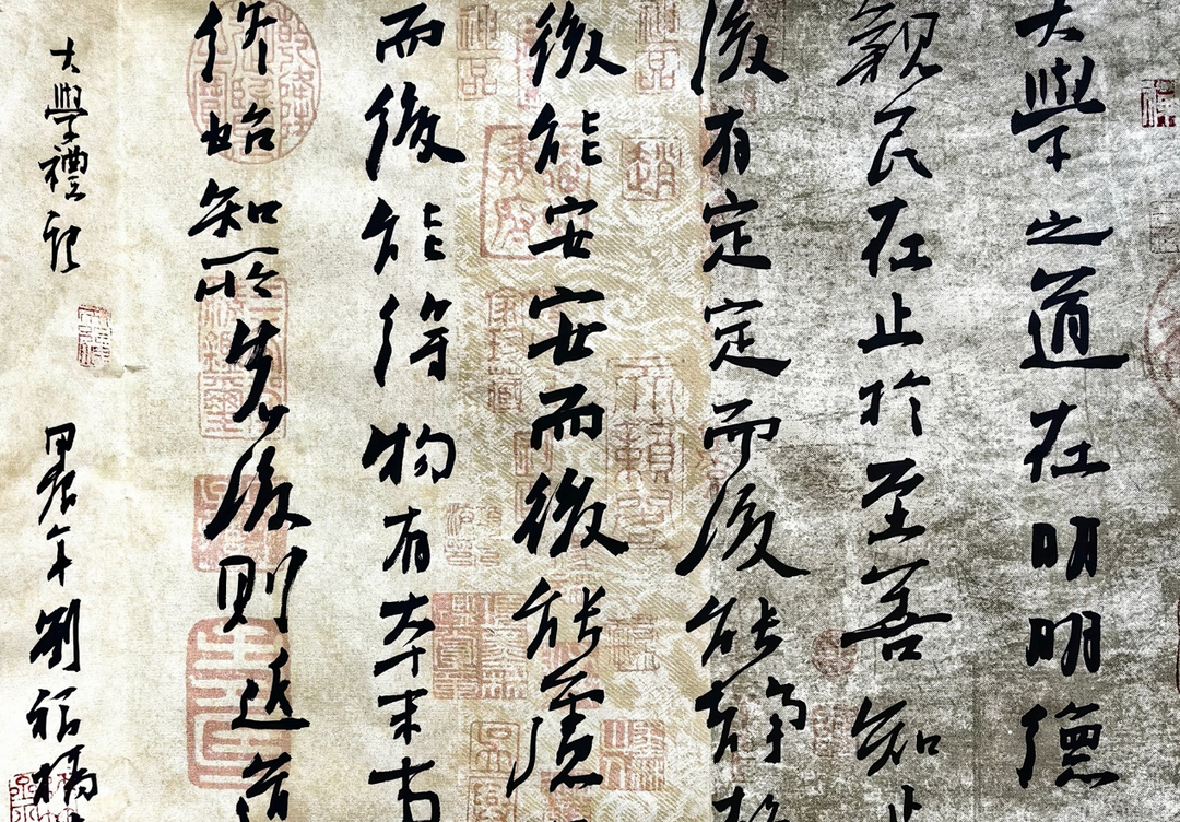 《沈鹏先生闻道未迟书展观后》 闻道未道迟,行行复行之。 三千犹恨少,半句有真知。 八十尚行脚,童叟皆可师。 知非遽伯玉,忧乐范公事。 体道炁于微,布德法雨滋。 非法非非法,般若行深时。 ![]()