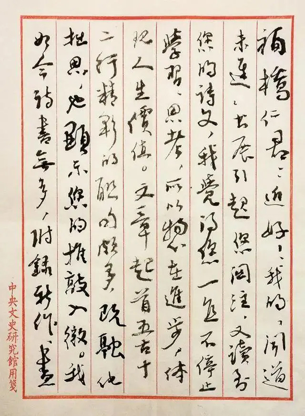 【艺术简历】 刘福桥,别署师竹斋,如如堂,圣莲斋,心逸居士。著名书画家;书画理论评论家;中国书法家协会会员;国家一级美术师;中国国家画院研究员;沈鹏先生入室弟子;沈鹏书法艺术研究院院长;中央电视台《中国艺术家》栏目“艺术顾问”;书画国礼特聘艺术家;中国合卢寺禅林书画院副院长;支援乡村建设最美艺术家。作品曾获中国书协举办的全国颜真卿书法大赛一等奖,参加国家级大展四十多次,获奖二十多次。作品被北京大学、清华大学、中国美术馆等收藏,出版有《当代名家刘福桥书法集》、《刘福桥书画集》。 ![]() 福桥仁君:近好! 我的“闻道未迟”书展引起您关注,又读到您的诗文,我觉得您一直不停止学习、思考,所以总在进步,体现人生价值。文章起首五古十二行精彩的联句颇多,既融化拙思,也显示您的推敲入微。我如今诗书无多,附录新作画 ![]() 《画兰》一首请哂正: 画兰曰“撇”叶飘然,笔底幽香地天宽。若不香从花草发,彩笺何以得清观。 沈鹏八月五日