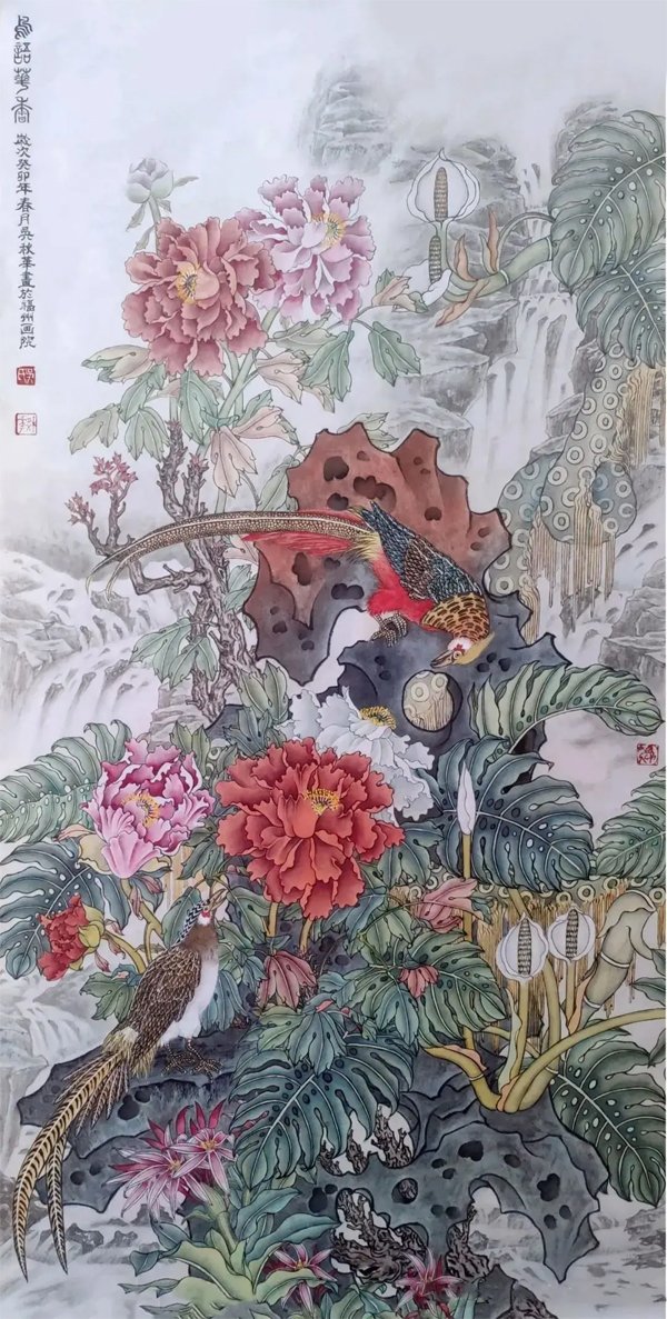 ![]() 《红岩颂》171×93cm 2024年 综上所述,国画艺术需要个性,而培养个性是每个想成功的画家的必经之路,就是要通过努力创作出适应新的意境所需要的新技法,让自己的作品脱颖而出,形成自己的风格树起自己的个性,这就要求我们要创造新技法,不但要动脑筋,而且要有胆识,要有不断探索的精神,要坚韧不拔地坚持下去,失败也不要紧,这是正常现象,只要自己有明确的追求目标,持之以恒,就一定能创造出自己的新技法、新风格,形成自己的个性,增强作品的生命力!注:本文已发表在中国美术出版总社主办/国家艺术类核心期刊《美术之友》2008年第四期,同时发表工笔画作品《紫荆鸣春图》。 ![]() 《生机勃勃》171×93cm 2018年 业精于辛勤,艺高于刻苦 ――贺“春华秋实”吴秋华画展 文/吴华光 吴秋华有句自我格言:“辛勤”是事业成功之前提,“刻苦”是艺术前进之动力。听后我深有此感,大千世界万物事业的成功秘诀都离不开辛勤的劳作与刻苦的探索,吴秋华也不例外,经历了三十多年的辛勤刻苦耕耘之后,今天他终于迎来了举办个人画展的日子,即将展出的五十多幅工笔画精品将给观众带来美的精神享受,同时也让人看到了吴秋华在工笔画创作道路上踏踏实实的绘画作风和不求惊天动地,但求一步一个脚印走过来的做事风格。 ![]() 《锦绣中华园》138×68cm 2024年 吴秋华举办个人画展消息的确给了我一个惊喜,都说他从上世纪八十年代起坚持二十年苦研工笔画而不为世人所知,甚至有人把他从事的国画专业遗忘,直至2008年吴秋华的国画作品《紫荆鸣春图》和论文《个性是国画艺术的生命力》发表在国家艺术核心期刊《美术之友》上,我才注意到他。今天他能创作出举办个展所需要相当数量的作品,而且是累人耗时的工笔画作品,尺度之大、数量之多,实属不易。 ![]() 《寿带吉祥》138×33cm×4 2023年 惊喜过后难免对其作品质量产生了质疑,然而这个疑问也随着我看到吴秋华画后而逐渐消失,从而深信了福州美术界对吴秋华辛勤刻苦绘画的赞誉,都说吴秋华做人低调、不好张扬,是个“埋头耕耘,不问收获”的人。于其说是他性格内向所至,不如说是他对自己作品存有永远不满足的谦逊之情。耳听为虚,眼见为实,每当我去福州画院展厅观展后去吴秋华工作室拜访,总会看到他在埋头认真地作画。 ![]() 《温馨家园》136×68cm 2024年 福州画院传达室老林告诉我:吴秋华上班没有假日,无论是刮风下雨,逢年过节,他总是第一个来,最后一个回去,除了吃饭睡觉大部分时间都在工作室作画。充分体现了吴秋华对绘画艺术的酷爱与追求。功夫不负有心人,成功总是陪伴付出辛勤刻苦劳动的人。的确如此,我观吴秋华的工笔画作品,气局阔大,生机勃发,他那喜好用画全景式工笔画来表达画意的手法,在展示他扎实基本功的同时,也展现出他惊人的毅力和耐力。 ![]() 《一家亲》136×68cm 2024年 另一方面,吴秋华采用工写结合的传统技法,使作品画面主次分明,并充满了文学味道,可以看出,他把自己文学修养融进了笔墨,在他笔下的山水花鸟走兽是其对现实生活中所表现出关乎生命意义的思考的形象化和艺术化,在倾注“韵”味和“趣”味的同时也提出了“形”、“神”兼备的问题,反映在他的作品之中,耐人寻味。我记得2009年,吴秋华的长篇小说《他乡有泪》在中国文联出版社出版,然而画家写小说也招来了一些人质疑,但吴秋华告诉我:“写作只是为了提升文学修养水平,为绘画艺术服务。”他还引用了著名画家叶浅予先生说过:“画家要有文学修养,如果没有文学修养,那你这个绘画作用就小了。”指明了文学修养在中国画创作中起到的关键作用。 ![]() 《鸟语花香》138×63cm 2023年 2011年1月他以“文学修养是成就中国画艺术的关键。”为题,撰写论文,相继在《中国艺术经典》和福州画院院刊上发表,同时发表了他的几幅佳作。2012年他那富有寓意的工笔画作品《饿鹰扑禽》荣获由中国工笔画学会主办的“2012当代中国百名中国工笔画家提名展”优秀作品奖,作品并被收藏,同时获奖作品和个人肖像简历刊登在《美术报》总第977期,使我完整地看清了吴秋华国画作品的个性风格和艺术特色:是注重画与现实生活的有机结合;是充盈着一种生活气息,在画中赋予了更多的人性化、情感化;是喜好“借物抒情,主张画中有“画”,使作品耐人寻味;是强调中国画艺术要有服务社会传播正能量、鞭挞假、丑、恶的社会责任感。 ![]() 《时光静好》171×93cm 2022年 值此我理解了吴秋华为什么白天刻苦作画,晚上辛勤写作的苦心,就是为了追求中国画精髓和灵魂,让绘画作品充满“神韵”和“趣味”,形成情景交融,雅俗共赏的意蕴,达到让人回味无穷的社会效益。为达到“借物抒情”画中有“画”这一中国画最高境界,吴秋华故意在给自己增加创作难度,将技法、神韵与作者的文学修养综合为一体,这种综合性是中国绘画艺术的主体,能使画家达到“轻而易举”的创作境地。正如宋沈括所言:“书画之妙,当以神会,难可以形器求也。”写到这里也让我想起古人曾说:谋事求成,当以勤为径,苦作舟之精神也。从中赞叹吴秋华辛勤作画,刻苦创艺精神,为此有人引用齐白石先生的诗句:“食叶蚕肥丝自足,采花蜂苦蜜方甜”对吴秋华其人其画赞誉。 ![]() 《风景这边独好》136×68cm 2024年 当下国民正精神焕发,为实现中华民族伟大复