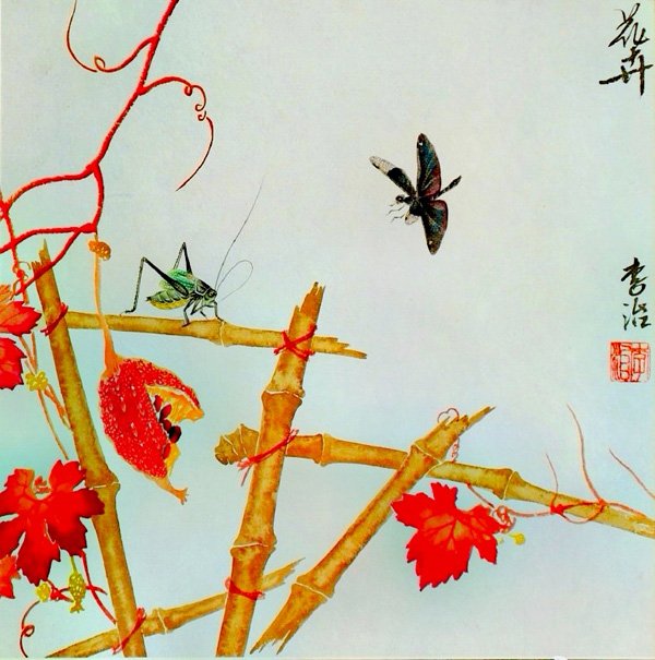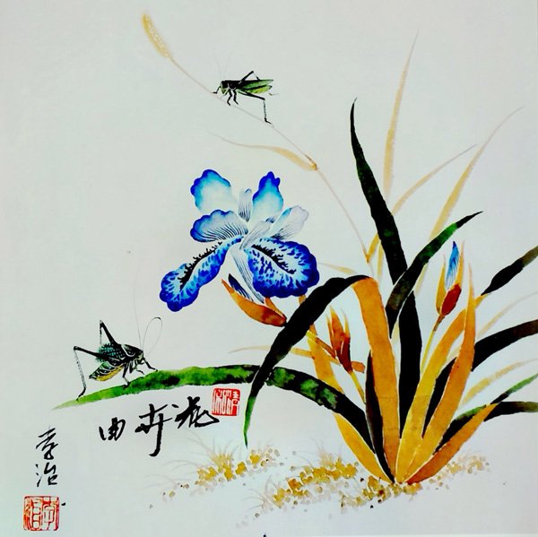 二、清隽素雅:美学的三重境界 “清隽素雅”四字,恰似四把钥匙,开启了李治花鸟艺术的精神密室: “清”在气格:其画作毫无浊滞之气,墨色层次如雨后新篁,通透澄澈。观其兰草,淡墨勾勒的叶片似有晨露滚动;写意花卉的设色虽淡雅,却在“墨分五彩”的哲学中幻化出万千韵致。这种“清”非寡淡,而是洗尽铅华后的本真,恰如文人画“绚烂之极归于平淡”的至高追求。 “隽”在笔意:线条如绵里藏针,柔韧中见骨力。他笔下的荷茎,一笔转过,顿挫提按间尽显生命的弹性;藤蔓的缠绕,在看似随意的书写中暗含书法飞白的节奏感。这种“书写性”正是文人画精髓所在——每一根线都是心绪的心电图,在“机敏而不炫弄”的分寸中抵达艺术的高境。 “素雅”为境:李治擅以最朴素的视觉语言构建最丰饶的内心景观。其工笔草虫系列中,一只蜻蜓停驻于枯枝,大面积留白处仿佛弥漫着林间雾气;写意牡丹虽舍却富丽设色,却通过水墨晕染的层次变化,令观者“仿佛嗅到清气袭人的香”。这种对素雅的坚守,在当代艺术崇尚视觉刺激的潮流中,恰如一股清流,默默守护着东方美学的精神标高。